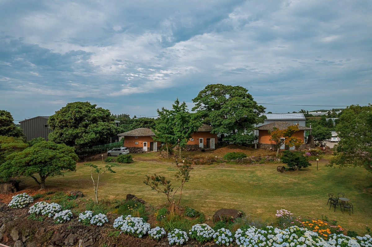Vi inviterer dig til en lille og charmerende traditionel Chogapension 'Shigopang' i Seongeup Folk Village i Jeju. Et superhus, der er omhyggeligt bygget af jord og sten, med en rolig atmosfære og ægte afslapning~~ Det er et sted, hvor børn kan få værdifulde oplevelser om traditionelle Jeju-græspande. Shigopang består af to separate rum, Angeul (Annex) og Outside Street (Annex), inden for et hegn i henhold til Jeju's gamle skikke. Indenfor vil du ikke føle dig utryg på grund af den rene, traditionelle struktur. Gå en tur rundt i folkelandsbyen, og mærk det gamle ansigt af Jeju~ ^^