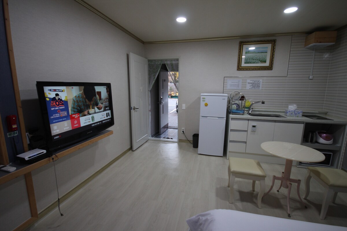 Der er plads til to personer. Selvom det er smalt, er der yderligere 20000 won for ekstra sengetøj til 1 person. Til din orientering: Ja, du kan også booke indkvartering til to billigere. Det ligger på vejen bag Gangmun Beach. Det er omkring et minuts gang på 50 meter lige til kysten. Læs opslagsbeskrivelsen og meddelelsen. Indtjekning er efter kl. 15.00, og udtjekning er kl. 11.00. Det er 10.000 won per ekstra tid. Det er ikke muligt at tjekke ind før kl. 15.00. Spørg ikke. Hunde er ikke tilladt. Der er gratis parkering på den anden side af gaden fra ejendommen. Hvis den er fuld, skal du bruge den betalte parkeringsplads foran kysten og foran ejendommen.