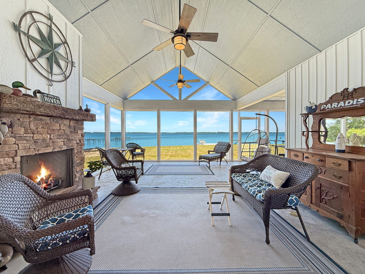 Sportsman's Paradise ligger blot få minutter fra Currituck Sound, der er berømt for sin andejagt og fiskeri. Det har udsigt over Tull's Bay og Tull's Creek og er omgivet af Northwest River Marsh Game Lands. Køkkenet og stuen har 9 vinduer, så du kan kigge ud over tre sider af huset på vandet. Væggene er af gamle råskårne brædder, og lofterne er af krydsfiner. Stuen og soveværelserne er tæppebelagt, og badeværelserne og køkkenet har laminatgulv.