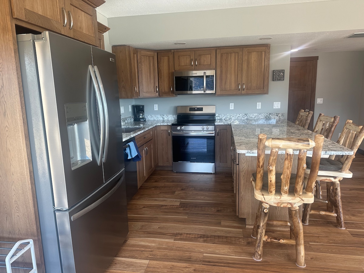 Simple, open, modern, warm, private and functional. Completely remodeled/reconfigured in '22. This clean and cozy lower unit has plenty of natural light that comfortably sleeps 6 plus one or two on the couches. 75 inch TV in living room Perfect for families, anyone working on the road, gamers, skiers, digital nomads, extended stays, or anyone looking for a relaxing, functional stay. The coolest (or hottest) shower in town with a rainfall shower head and controllable LED shower light.