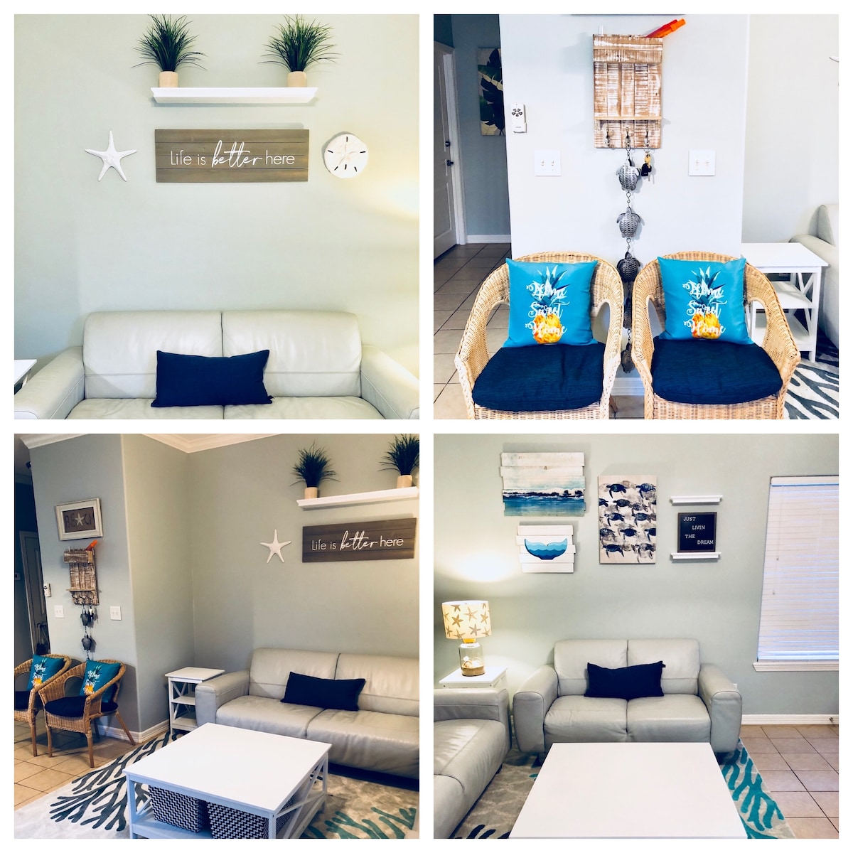 Hvis dette hjem kunne opsummeres med ét ord, ville det være UDSIGT! Du vil måske bare gerne bo i denne charmerende kystby for evigt efter at have været på ferie i dette moderne feriehus. Her er du også få sekunder væk fra Lighthouse Square, der er vurderet som en af de ti bedste bypladser i Texas. Nyd shopping, kaffe, mad, is, en mole at gå eller fiske på og meget mere. Og broen til SPI ligger lige her. Så når du vil komme til øen eller stranden, kan du gøre det hurtigt og bekvemt.