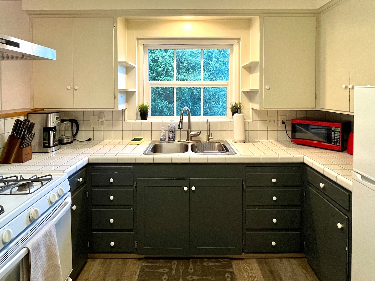 Ombygget oase til den perfekte flugt til dette private gæstehus med et eklektisk, farverigt design, der blander moderne, landlig, europæisk-inspireret indretning med moderne luksus og spektakulære ovenlys. Slap af i den frodige have lige uden for soveværelset. VI ACCEPTERER OP TIL 2 HUNDE MED ET EKSTRA RENGØRINGSGEBYR PÅ 150 DOLLARS. INGEN KATTE. BEMÆRK, AT DER ER 3 UDENDØRS OVERVÅGNINGSKAMERAER I PARKERINGSOMRÅDET OG PÅ INDKØRSEL FOR AT SIKRE GÆSTERNES SIKKERHED.