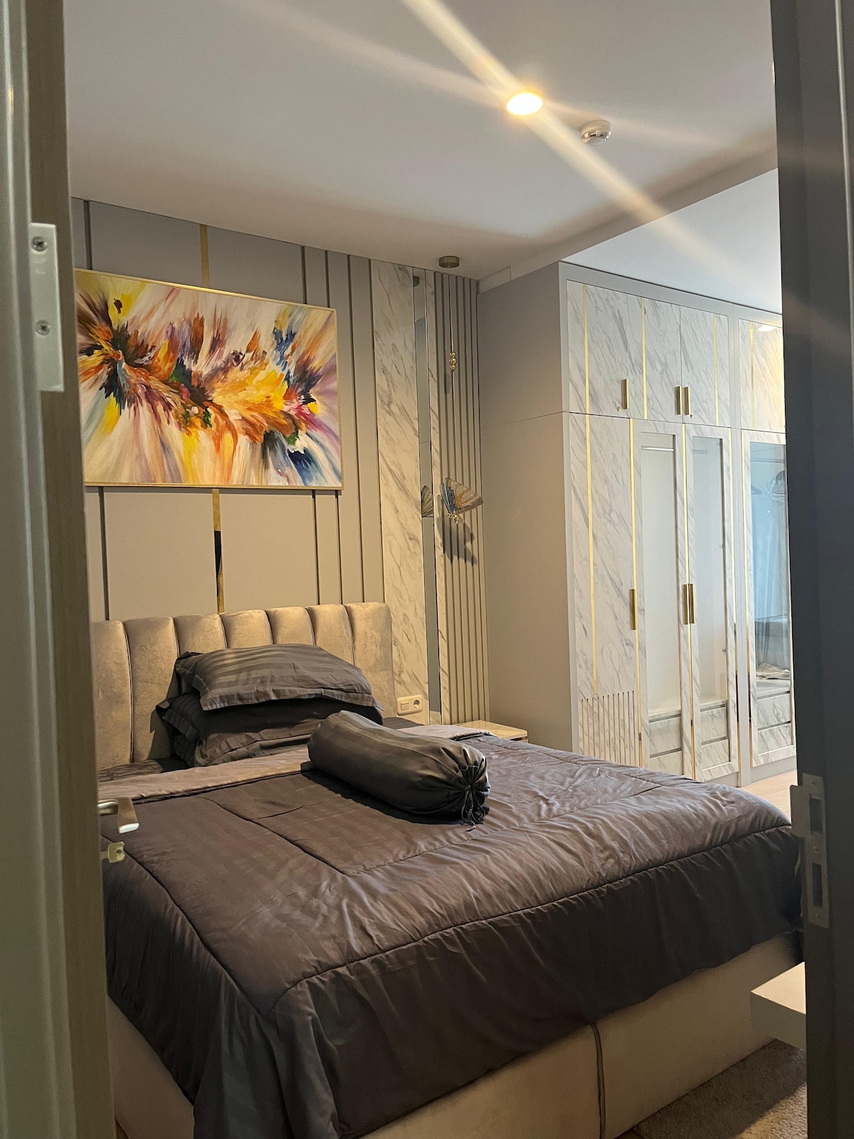 Type Suiter 2 soveværelser Størrelse : 80 m² - Køleskab - kaffemaskine - Vandbeholder - Vaskemaskine - Køkkenredskaber - Rengøringsredskaber - Wifi -Vandvarmer - Altaner -tv - Tøjstrygejern - Sammenklappelig tøjlinje - Prei/ sengetæppe - Elektricitet 3850 watt Faciliteter 1. Swimmingpool 2. Fitnesscenter 3. Døgnåben sikkerhedsvagt 4. Kortadgang 5. Elektricitet og vand 7. Multifunktionsrum 8. Tagterrasse på 31. etage *Kampagnepris september-oktober* Dagligt Rp1.5jt/malam Månedlig Rp25.jt/bulan 1 år IDR 200 m *Vedligeholdelsesgebyr bæres af boligejer *
