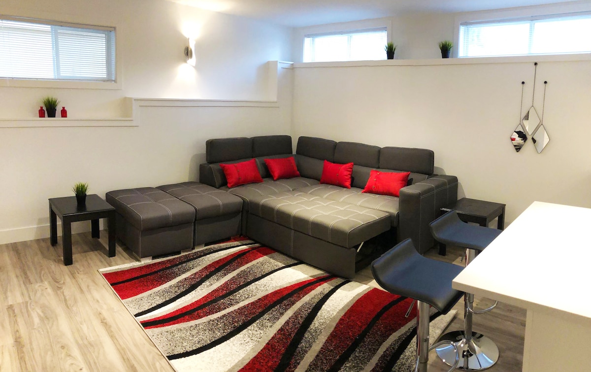 Licence26072;Registration#H686681710 Central located independent suite has a separate entrance from the house. 9mins walking distance to bus station, 15 mins walking to beach, 12 mins walking from shopping center. This suite includes 1 bedroom with 1 QUEEN bed; 1 living room with a leather sofa, TV with Netflix, and small kitchen; 1 bathroom. Free WIFI, coffee and tea, iron, hair dryer, shampoo & body washer, Mirror. Keyless locker. 1 parking on drive way Coin laundry is 4mins driving away.