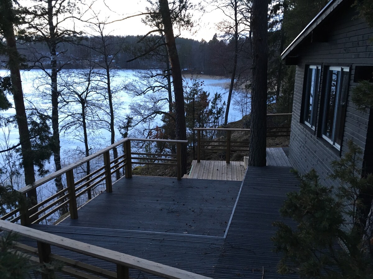 En traditionel sommerhytte fra 1940'erne med en sauna ved søen, 60 minutter fra Helsinki. Der er en hovedhytte, en gæstehytte om sommeren med to soveværelser og en dejlig sauna kun to meter fra søen! Pluk blåbær, tyttebær og skovjordbær på ejendommen, fisk efter gedder og aborrer fra saunadækket, eller tag robåden ud for at få en større fangst. Der er nogle gode svampepladser i skoven bag hytten.