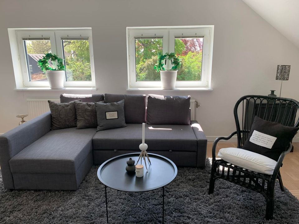 Lys og indbydende lejlighed til leje i det centrale, charmerende Skanör. Denne fuldt møblerede og udstyrede lejlighed tilbyder en perfekt base til dit ophold. Lejligheden: Ca. 90 kvm på anden sal med plads til 4-5 personer. Soveværelser: *Soveværelse 1 med 180 cm seng (plads til 2) *Soveværelse 2 med to 105 cm senge (plads til to) *Sovesofa i stuen (plads til 1) Beliggenhed: Gåafstand til strand, havn, restauranter, fitnesscenter, caféer, golfbaner, købmand, bank og apotek. Oplev det bedste af Skanör!
