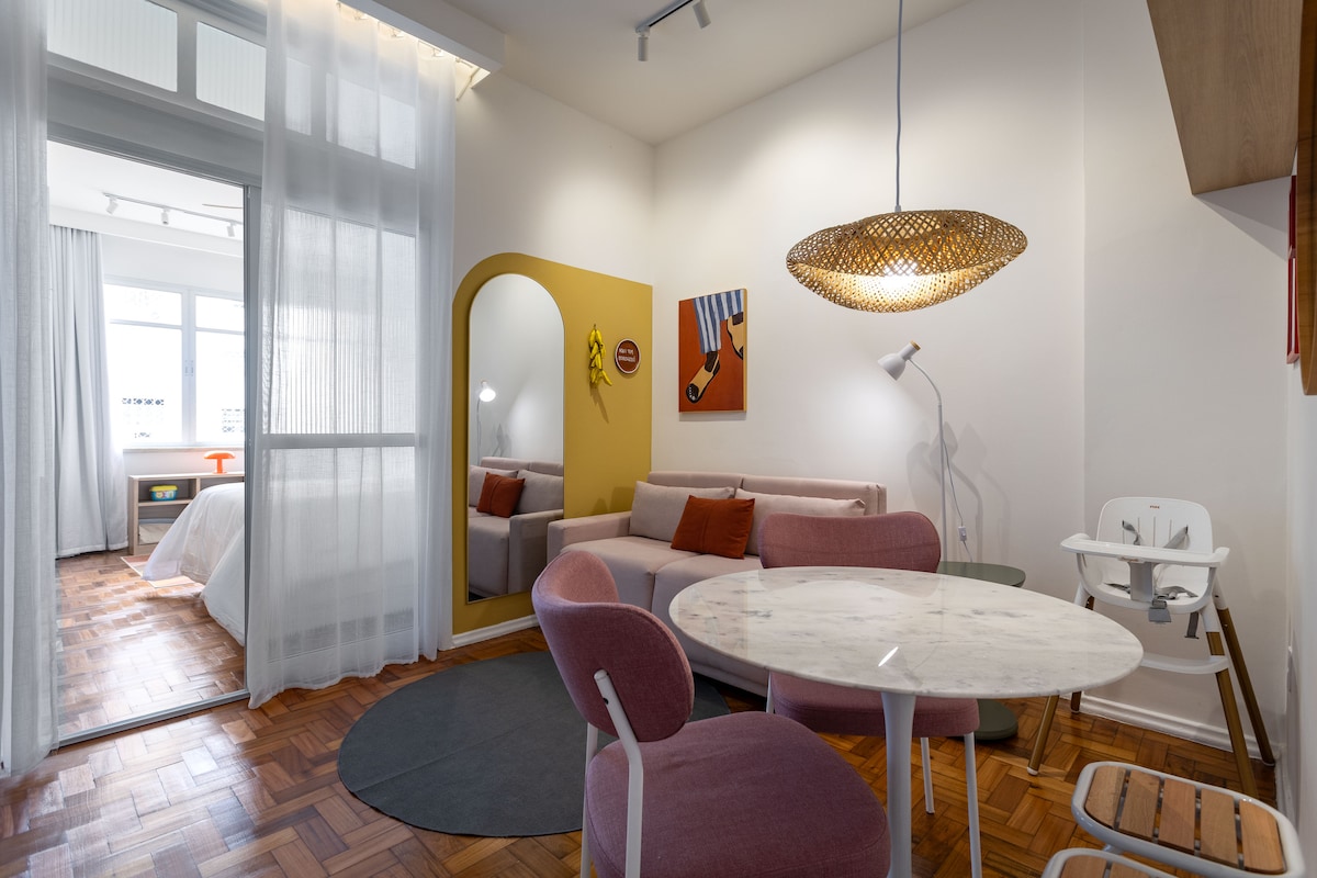 Lejlighed HELT RENOVERET for nylig med et projekt underskrevet af 2 arkitekter. Det ligger på strandkvarteret, på hjørnet af Av. Atântica. Alt er gennemtænkt med stor omhu for hver eneste detalje! Nem adgang til banker, markeder, apoteker, metrostation (Siqueira Campos eller Arcoverde), barer og strandene i Leme, Ipanema og Leblon.