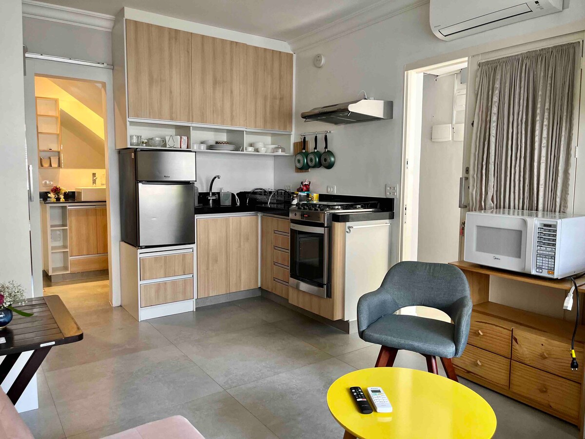 🏠 Loft med åben planløsning på 1. sal • 55 m² integreret: rummeligt, moderne og vægfrit miljø. • Eget badeværelse, uden deling. • Strategisk beliggenhed: • Kun 400 m fra Belém-metrostationen. • Cirka 20 km fra Guarulhos Internationale Lufthavn, fremragende til ankomst- eller afgangsflyvninger. • Tæt på butikker, restauranter og lokale attraktioner. • Privatliv, stil og mobilitet på ét sted. Book nu for at få en praktisk oplevelse i hjertet af byen.