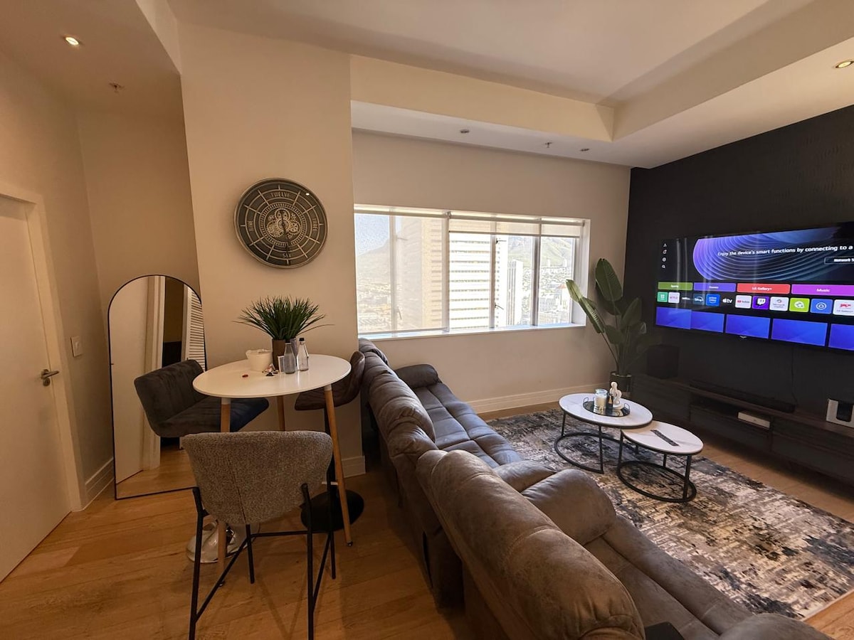 Nyd den uspolerede udsigt over Taffelbjerget, eller nyd gåture i solnedgangen langs stranden. Denne hyggelige studiolejlighed har udsigt over det berygtede Taffelbjerg. Nyd en morgenmad ved solopgang eller solnedgang med udsigt over Table Bay i et komfortabelt og fuldt funktionelt rum. Åben planløsning og udstyret med alt, hvad du har brug for for at gøre dit ophold behageligt. Adgang gennem en døgnåben bemandet sikkerhedsport. Trapper til boligen. Gratis parkeringsbugt. Te, kaffe og 5L Quella Bottled Water leveres ved ankomsten.