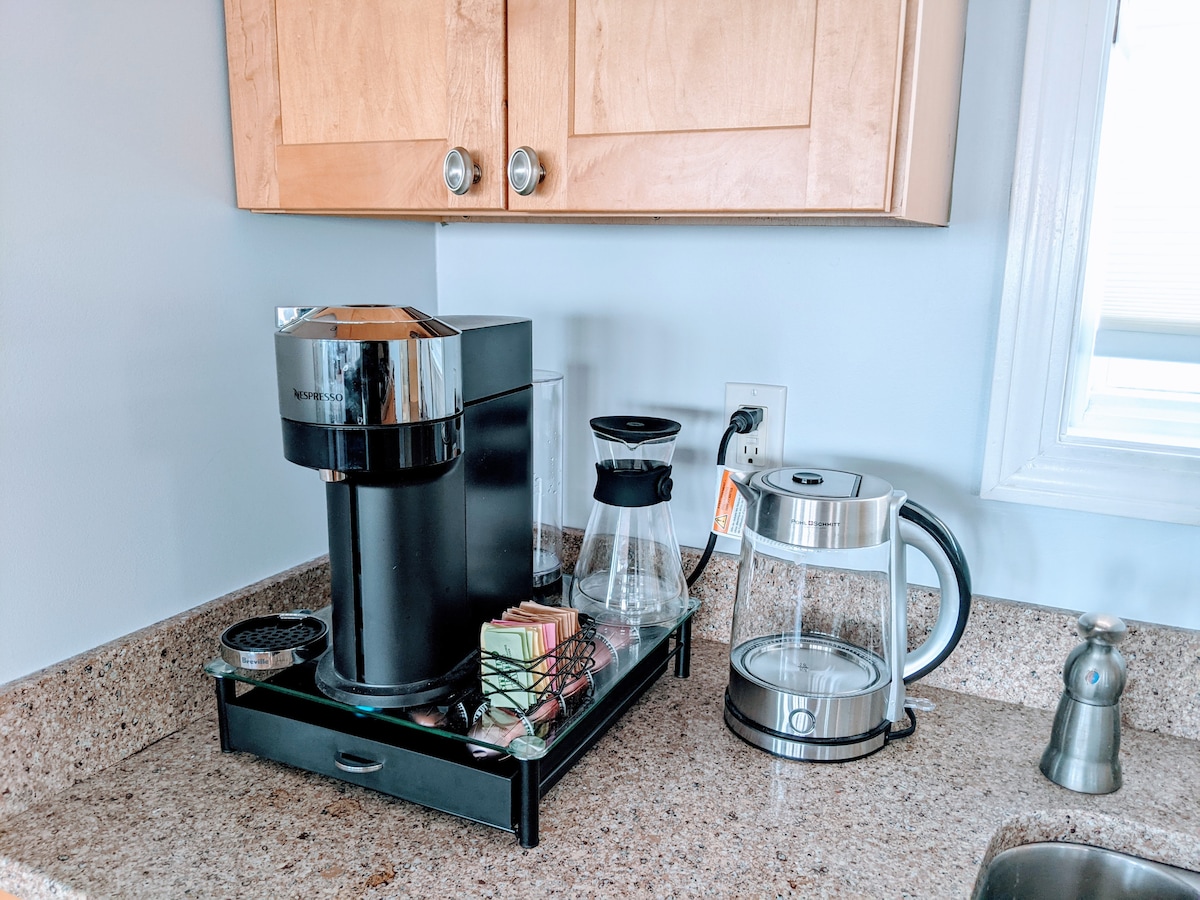 Nyd nogle af Portland-områdets fineste destinationer året rundt. Denne solrige lejlighed i stueetagen i Cape Elizabeth har sæsonbestemt udsigt over vandet og ligger mellem Kettle Cove, Crescent Beach og Two Lights State Parks. Marker, skove og damme ligger en spadseretur væk, mens Portland centrum ligger en nem 15-minutters køretur væk. Lejligheden er en fantastisk base til at udforske det sydlige Maine fra og en lige så fantastisk beliggenhed til at slappe af og nyde Maines kystnære vand og luft.