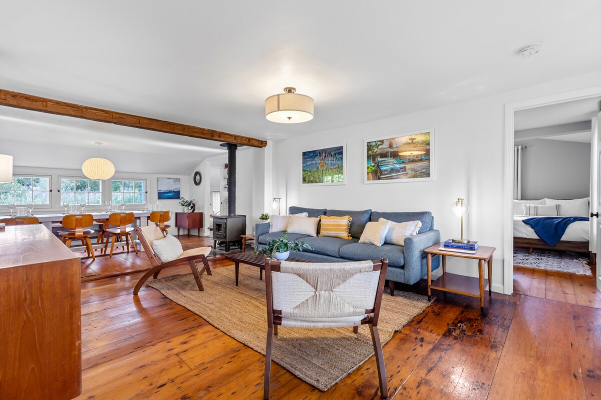Oplev North Fork fra vores stilfuldt renoverede 100 år gamle byhus. Perfekt beliggenhed, du kan gå til byen, strande og et lokalt bryggeri. Denne lyse, luftige bolig har et nyt køkken, central aircondition og en privat terrasse med grill. Den kan rumme op til 8 gæster og er den ideelle base for familier eller grupper, der udforsker Long Islands vinområde. Parker din bil, og nyd en smuttur til fods!