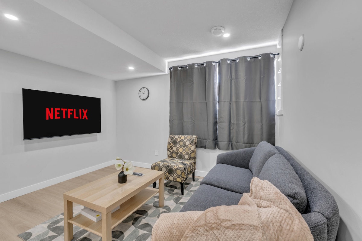 Elegant 2BR Walkout Basement er et privat, omhyggeligt udvalgt fristed, der tilbyder raffineret komfort og stille luksus. Nyd varme aftener ved pejsen og rigeligt naturligt lys fra store vinduer. Denne rummelige suite med to soveværelser har en queensize-seng og en dobbeltseng, der er ideel til gæster, der værdsætter privatliv, renhed og en forhøjet komfortstandard. Direkte adgang til baghaven og dedikeret indkørsel er inkluderet. Et par skridt fra Bow River-stierne, Sobeys, Seton YMCA og South Health Campus Hospital.