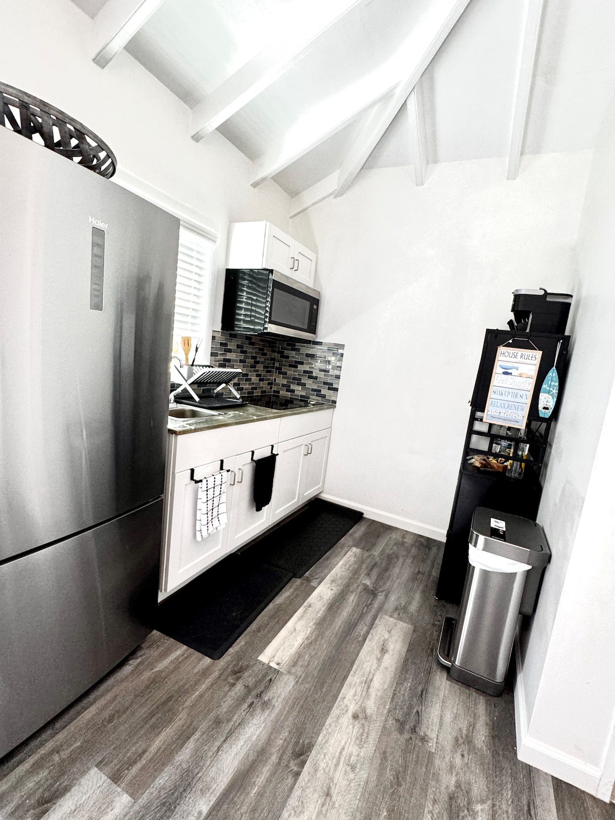 Welcome to "Sunset Villas" the "Good Morning" tiny container home. Where you have clear views of crystal sparkling waters of the beach and beautiful sunsets everyday. This new Air BnB is already a memorable place and far from ordinary. Its location makes it perfect for you to get around. You are ONLY 4min walk to a strip of beaches 3min drive to F'sted Pier & Park 3min drive to Restaurants in the heart of F'sted town 15min drive to the airport