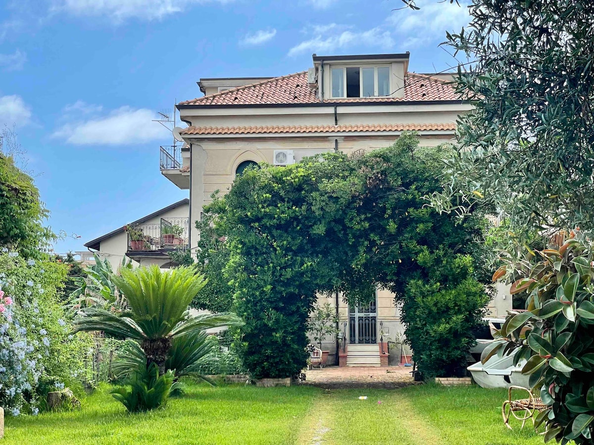 Costa degli Dei, få meter fra sandstrande og krystalklart hav, i en gammel villa med en stor have, en meget lys lejlighed, havudsigt og betagende solnedgange over Stromboli-vulkanen, møbleret med kærlighed og alle bekvemmeligheder. Et sted at slappe af med en varm velkomst. 2 dobbeltværelser, 1 værelse med to enkeltsenge, 2 badeværelser, stor stue-køkken, afslapningshjørne, spisestue, terrasse med siddeområde. Lamezia 15 km - Tog 100 m - Omsætning til Æoliske 3 km - Tropea 18 km. Jeg glæder mig til at se dig med en vis glæde, der vil forblive i dit hjerte.