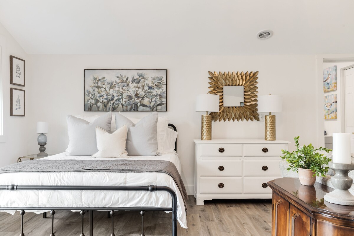 Dette fuldt renoverede gæstehus med kingsize-seng tilbyder et fredeligt, luftigt ophold, der er perfekt til forældre til universitetsstuderende, par på en udflugt, forretningsrejsende med mere. Du vil nyde et komplet køkken, en fyldt kaffebar, et rummeligt badeværelse og en stilfuld stue med RokuTV. Der er parkering på stedet med privat indkørsel og indgang. Dette placerer dig 10-15 minutter fra downtown Spartanburg, herunder Converse, Wofford og Spartanburg Methodist Colleges, og 20 minutter fra USC Upstate.