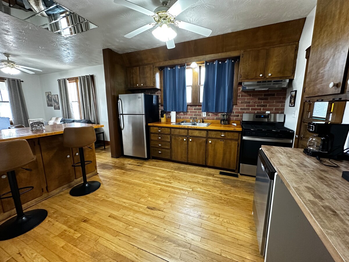 Velkommen til The Cowboy Corral, hvor alle er velkomne. Rummeligt hus med 2 soveværelser og masser af parkeringspladser til biler, trailere og meget mere! Den udtrækkelige seng giver ekstra plads til flere gæster, og der er en åben stue og køkken, hvor alle kan hænge ud sammen.