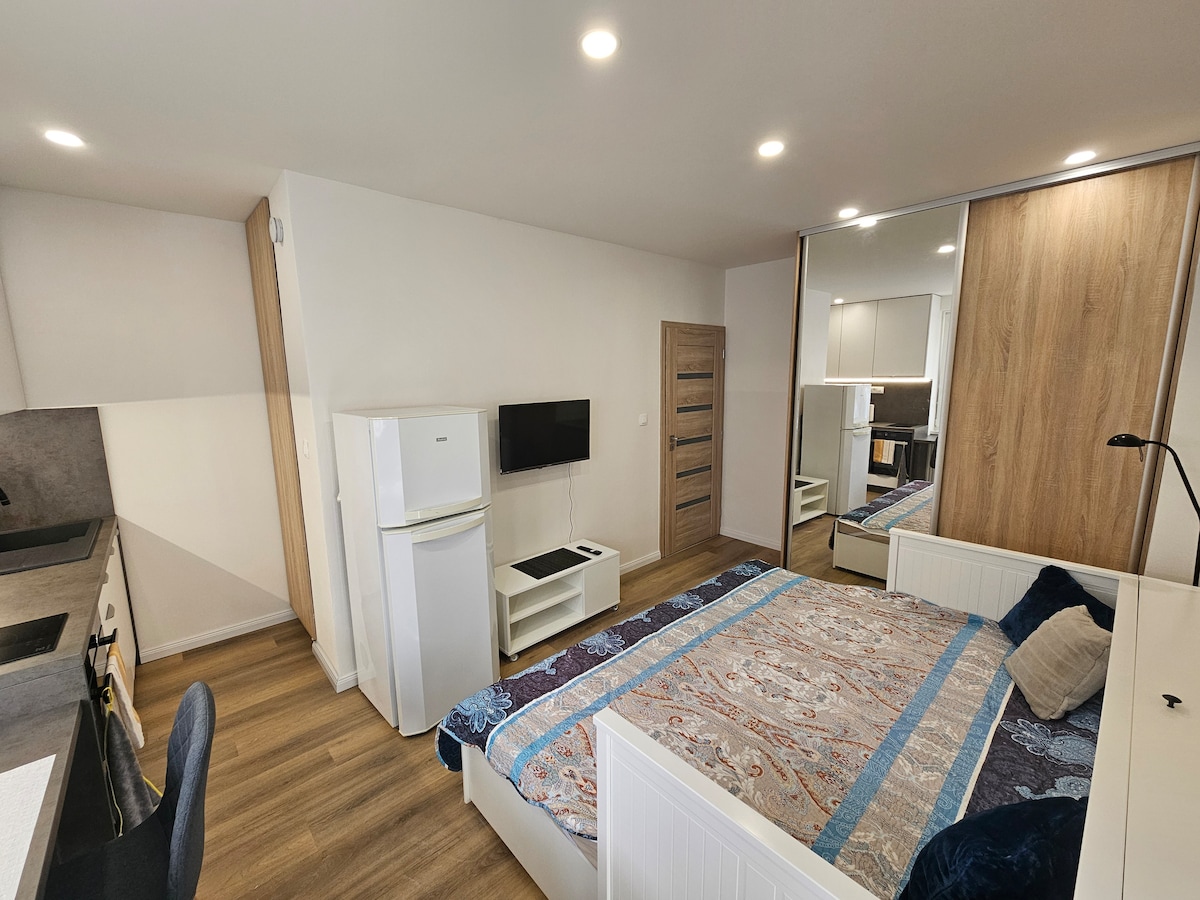 Moderne lejlighed i centrum af Spišská Nová Ves med udsigt over byen og Tatra, ideel til op til 4 gæster. Der er 2 soveværelser, 2 badeværelser, en stue med køkken og en sovesofa. Der er en lille balkon og en fælles terrasse med en smuk udsigt over Tatraerne. Overfor lejligheden finder du Bill og Coop, der er gode til hurtig shopping. Et kirketårn og masser af restauranter og kaffebarer venter dig på pladsen, kun 5 minutter væk til fods. Der tilbydes parkering på en privat parkeringsplads med videoovervågning og en barriere.
