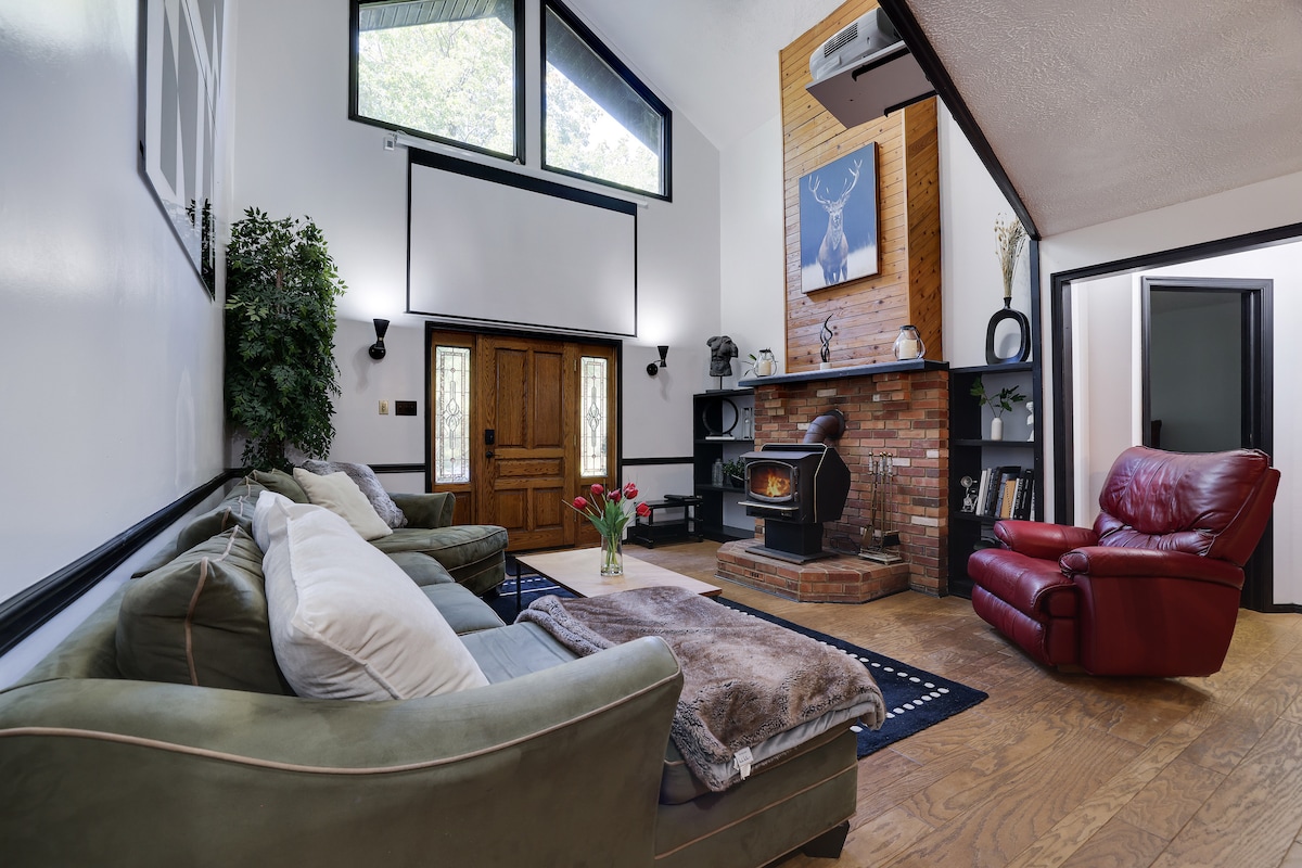 Poconos hytte|Spabad|Hjemmebiograf|Sauna|Pejs