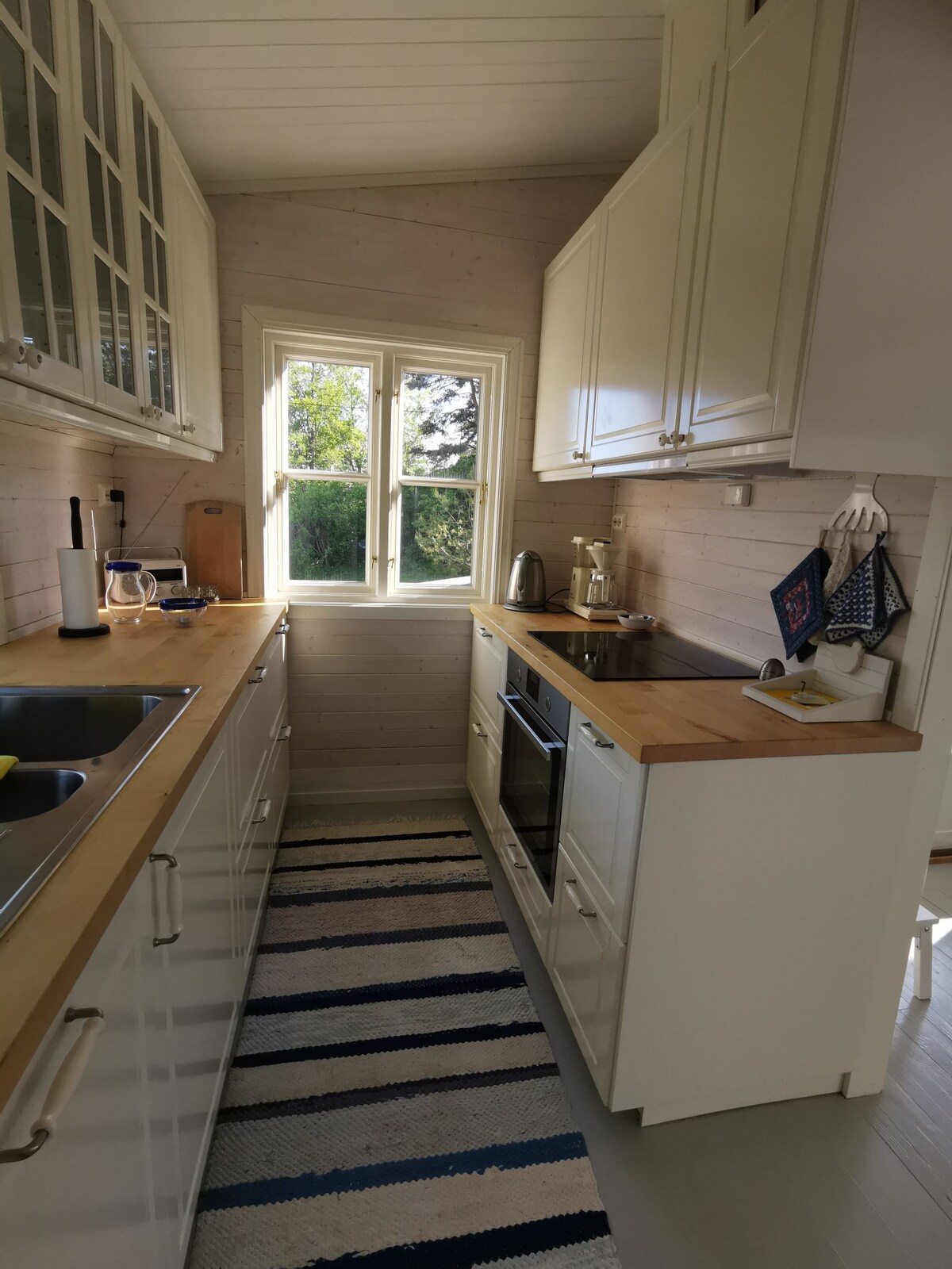Køkken og stue med 155 cm dages seng og havudsigt. Hovedsoveværelse med 160 cm dobbeltseng. Køkken med ovn/induktionskomfur, køleskab/fryser, service og mikrobølgeovn. Badekar med bruser, vaskemaskine og tørretumbler. Terrasse og stor terrasse med græs. Parkering udenfor. 10 minutters gang til vandet med strande, klipper og bådhavn, skoven 1 minut bag huset. 15 minutter at køre til centrum, 10 minutter til Nordby shopping. 20 minutter til Koster med båd. Roligt område.