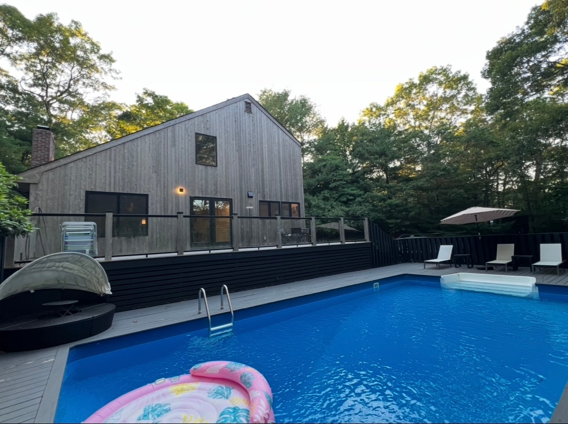 Contemporary 4-bed + 4 1/2 bath home sitting on a park-like acre of gardens. Swim in the large pool (opens 04/25 and closes mid-October (there's an additional charge for heating - see below), relax in a hammock or bbq on the deck. Play ping-pong, darts, pool or take a 15 min walk to private bay beach to swim and paddle board. Or drive 15mins to the Atlantic beaches and visit picturesque Sag Harbor, Montauk. Reduced cleaning fee for small groups. RentReg RR-25-399 Local taxes included