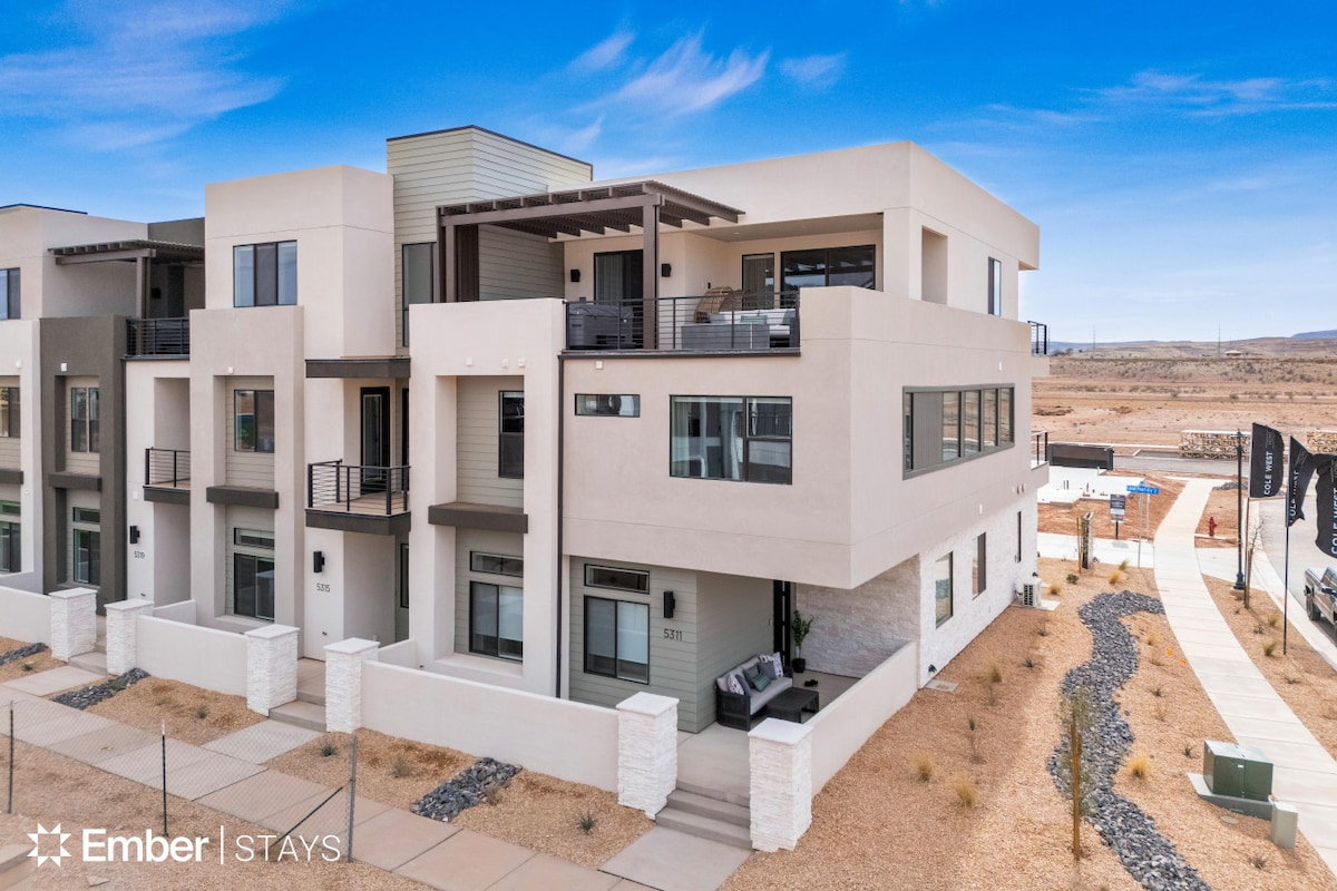 Helt nyt byhus ligger 36 miles fra Zions Nationalpark og har et privat udendørs boblebad, bålsted og en opvarmet pool! Det rolige Vida Sol-samfund ligger kun 2 minutter fra I-15 og 5 minutter til St George-outletbutikkerne og Walmart/Costco. Mountainbiking, vandrestier og to parker i nærheden. ✓Privat spabad ✓3BR/3BA ✓Professionelt køkken ✓Hurtig/gratis internet ✓Smart-tv ✓aircondition ✓Bålsted ✓Grill ✓Opvarmet pool (fælles, opvarmet året rundt) ✓Vaskemaskine/tørretumbler ✓Stort badekar