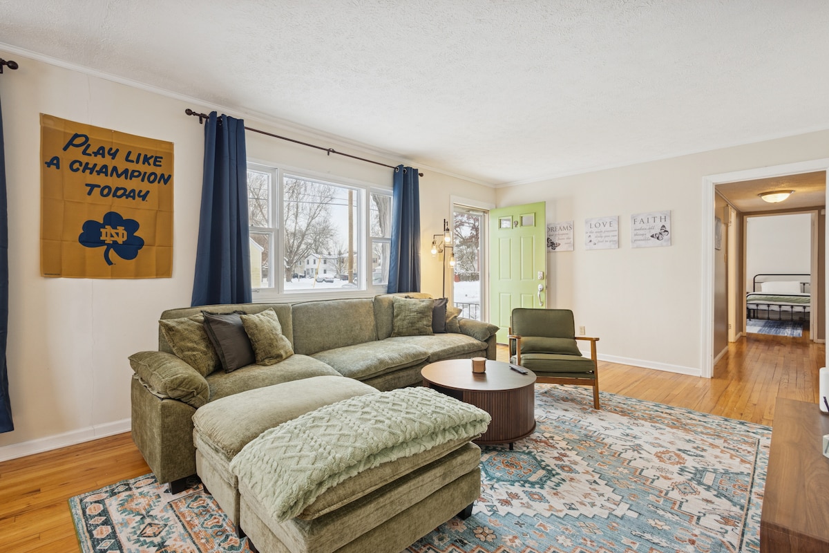 ☘️ Slap af i denne hyggelige og stilfulde bolig, mindre end 1,6 km fra Notre Dame stadion og Eddy Street. ❤️Klik på hjertet øverst på opslaget for at gemme det som favorit❤️ Pokagon House er et ombygget hjem fra 1920'erne med moderne faciliteter, der ligger et kvarter fra kanten af ND og St. Marys campusser. 1 mile fra centrum og tæt på alt, SB har at tilbyde! Praktisk til 80/90, ND, Eddy Street, restauranter, Downtown SB, The Morris PAC, The Children's Hospital, Four Winds Baseball og meget mere.