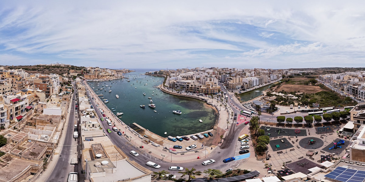 Helt nye lejligheder åbnede i maj 2023 beliggende i hjertet af Bugibba tæt på stranden og promenaden;Hyggelig, moderne og hjemlig,denne lejlighed er det ideelle sted at tilbringe en ferie med dine venner eller særlige nogen, central beliggenhed og moderne interiør. Med 3 soveværelser, 2 badeværelser og et fuldt udstyret køkken. Aircondition, hurtigt internet i alle værelser, Smart-tv. Håndklæder og sengetøj er inkluderet, brødrister, hårtørrer, vaskemaskine, kaffemaskine. Stueetagen.
