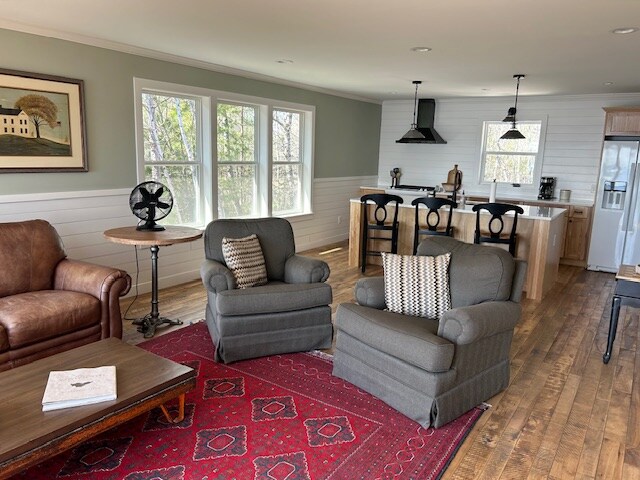 En unik, ottekantet bjælkehytte i cedertræ, der ligger på 40 afsides skovbevoksede hektar. En kort vandretur over Sucker River på en eventyrlig fodbro til en generøs terrasse, der omgiver hytten. Du skal være i god fysisk form for at bo her. Du skal klatre op ad en stejl stige til loftet og tage et trin på 2 fod for at komme af terrassen til det sumpede land nedenfor for at lave et bål. Medbring også en følelse af eventyr! Dyrelivet er meget tæt på. Vi tillader desværre ikke dyr eller rygning af nogen art.