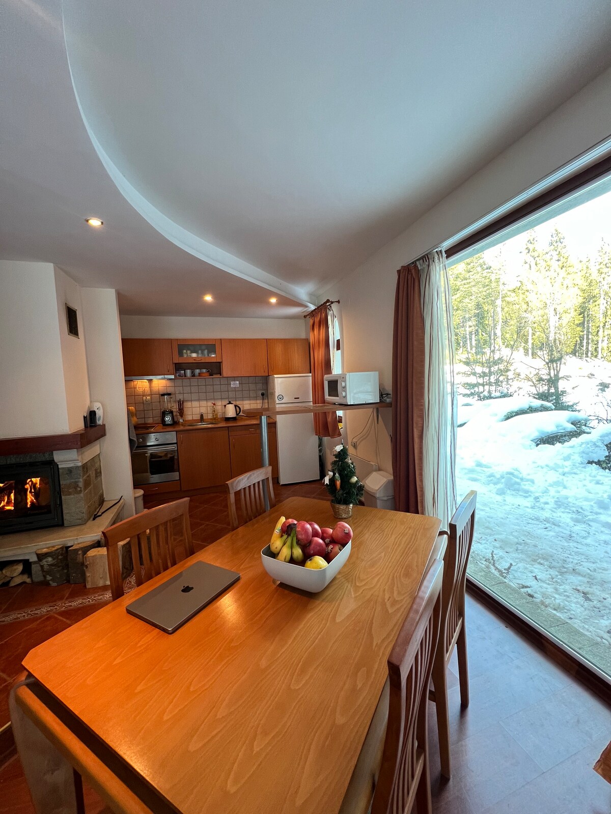 Velkommen til vores fredelige bjergvilla, der ligger blandt majestætiske gran- og fyrretræer. Dette hyggelige tilflugtssted er perfekt til alle årstider og tilbyder en varm pejs, betagende panoramaudsigt og frisk alpin luft.
