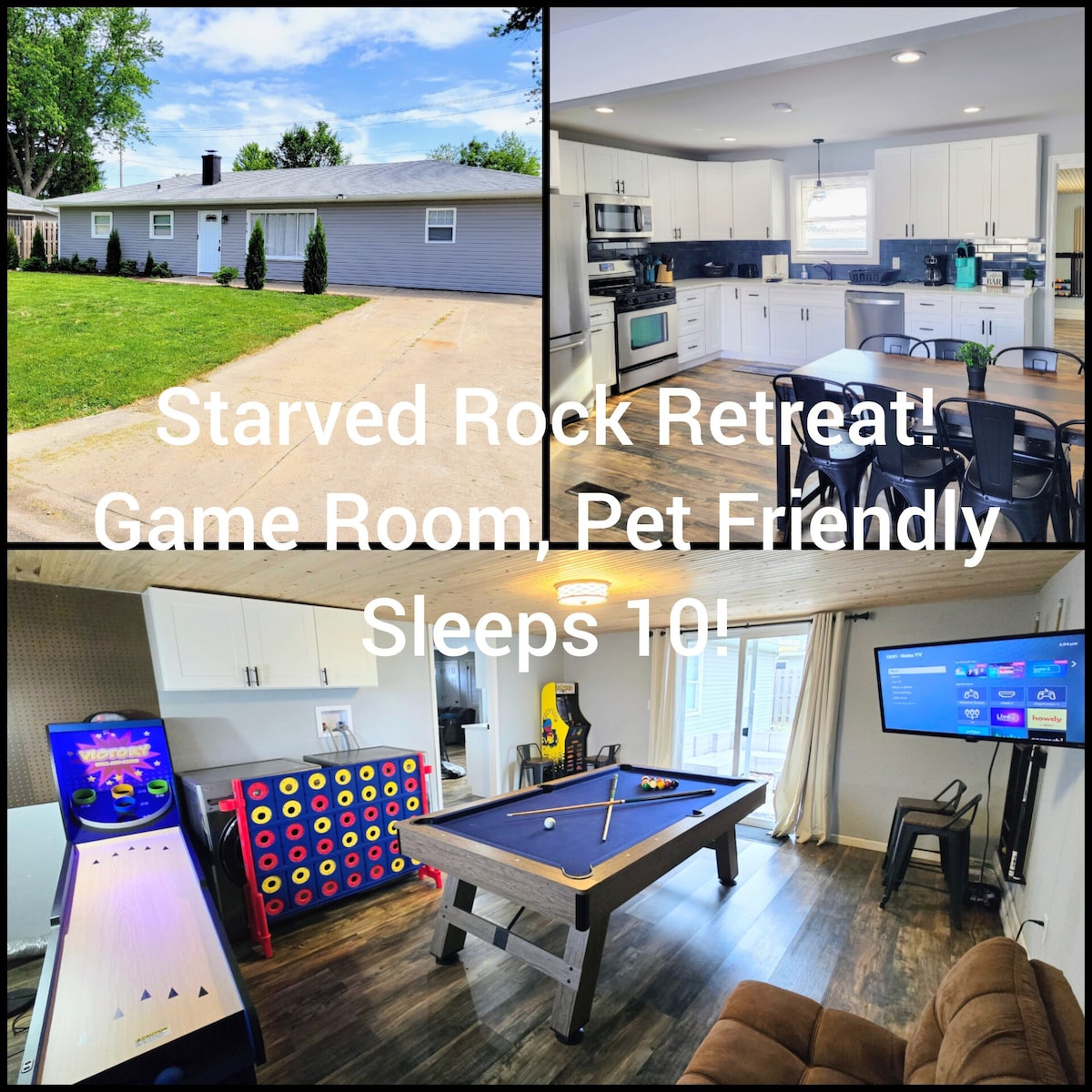 Starved Rock Retreat! Billardbord, kingsize-dobbeltseng