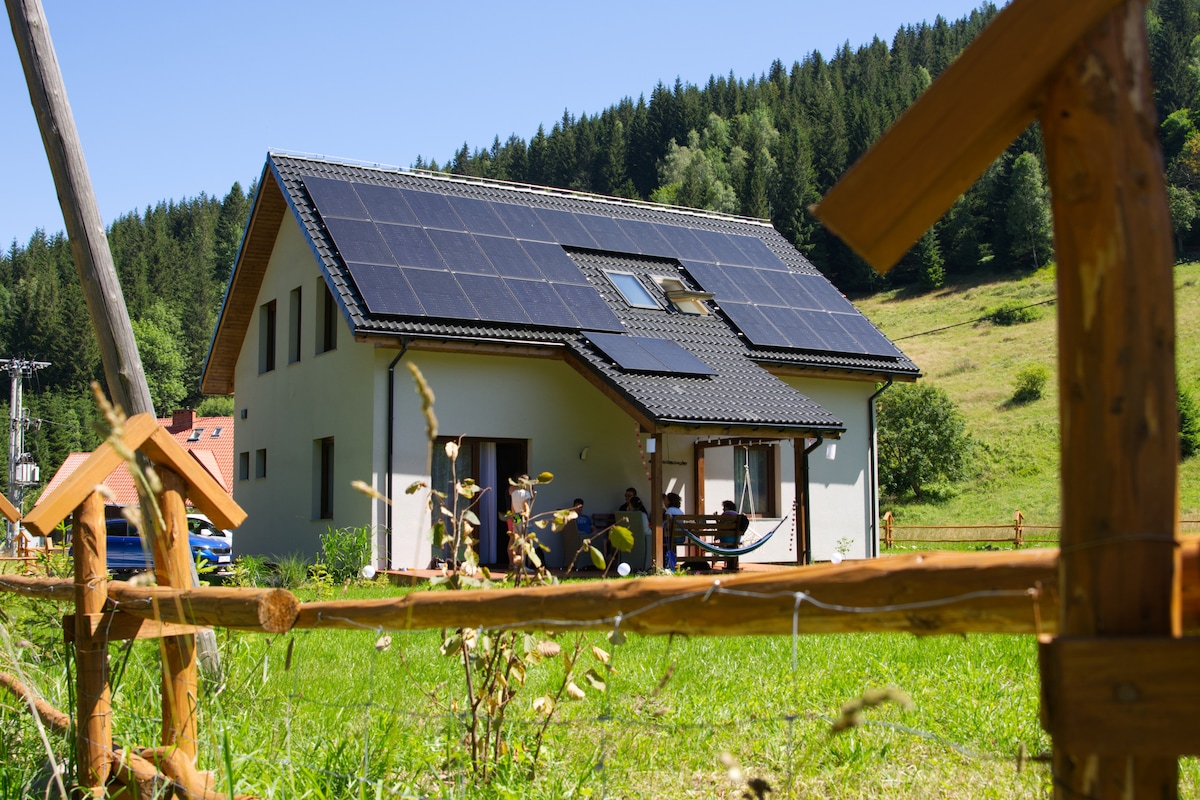 Velkommen til huset i Bielice! Beliggende i den sidste landsby - længere frem er der kun skov og bjerge. Du kan regne med stilhed, kontakt med naturen og god adgang til vandrestier. To bjergtoppe venter på dig, hvis du vil bestige den polske bjergkæde Korona Gór Polski, kun en kort gåtur fra huset.