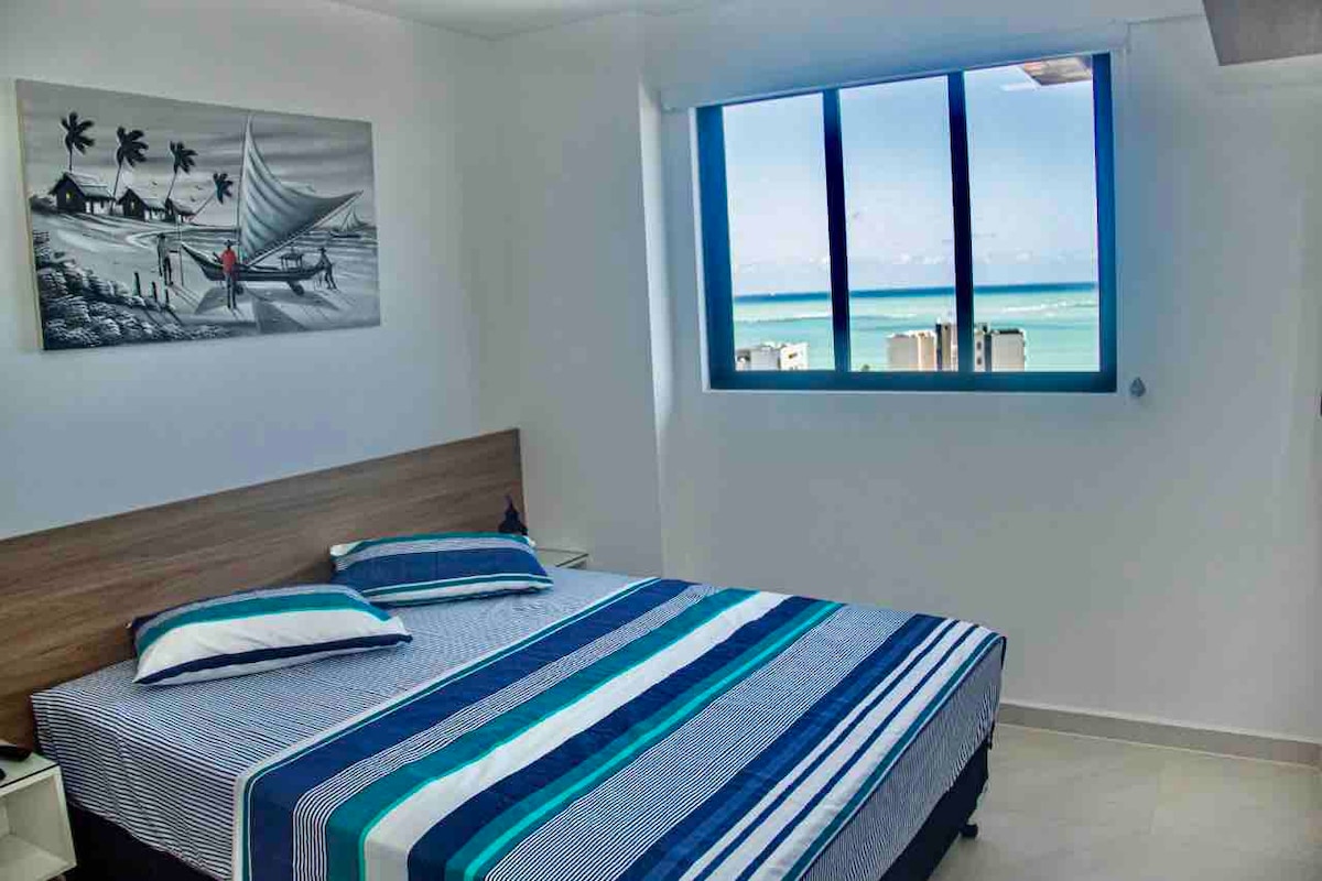 VÅGN op med havudsigt over Pajuçara! Lejlighed på 10. (tiende) etage i New Time Building i Beira mar de Pajuçara. Med en infinity pool og en fantastisk udsigt over Maceiós havnefront. Med udsigt over de naturlige pools i Pajuçara. Bygningen har: + Fitnesscenter + Swimmingpool på taget + SPA (Jacuzzi) + Sauna + Børneområde + Legeværelse. Privat lejlighed: + queensize-dobbeltseng +Aircondition +Køkkenkompakt og med redskaber + Varmt brusebad +wi-fi +Sovesofa +TV Smart 60 tommer