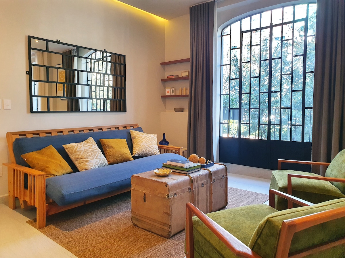 Dette er en 57 kvadratmeter stor lejlighed med meget højt murstensloft, en stor stue og spiseplads med en masse lys. Find autentiske, smarte møbler fra midten af århundredet og flere kunstværker. Lejligheden har et privat soveværelse med queensize-dobbeltseng, garderobe og badeværelse og et separat køkken med forsyninger. Der er også to små indvendige terrasser til lys og ventilation. Mange originale arkitekturdetaljer fra 1940 som gulve, murstensvægge, loft og vinduesrammer blev bevaret i restaureringen. Projektet blev for nylig vist i Architectural Digest Mexico og vandt flere vigtige arkitekturpriser: Architecture Masterprize og NoldiSchreck. Gæsten kan bruge hele lejligheden. Du kan også hænge ud i lejlighedens indre terrasse og lobbyen på første sal. Der er også et vaskerum med vaskemaskine og tørretumbler, du kan bruge ved siden af garagen. Santa María La Ribera er et historisk kvarter fra det 19. århundrede. Gå en tur i Alameda Park overfor, og besøg derefter det nærliggende Museo de Geología. Her kan du se på fossiler af mammutter og dinosaurer samt malerier af den berømte mexicanske mester Jose María Velasco. Du kan finde en masse offentlige transportmuligheder, herunder metro, metrobuss (direkte linje til lufthavnen og det historiske centrum), tog, bus og offentlig cykelsystem (ecobici). Metrobus Linea 4 norte er en direkte forbindelse fra lufthavnens T1 og T2 til Buenavista og tilbage. Turen tager ca. 45 minutter. 30 pesos/person, og du skal bruge et genopladeligt Metrocard. Sikker, hurtig og direkte vej til og fra lufthavnen.