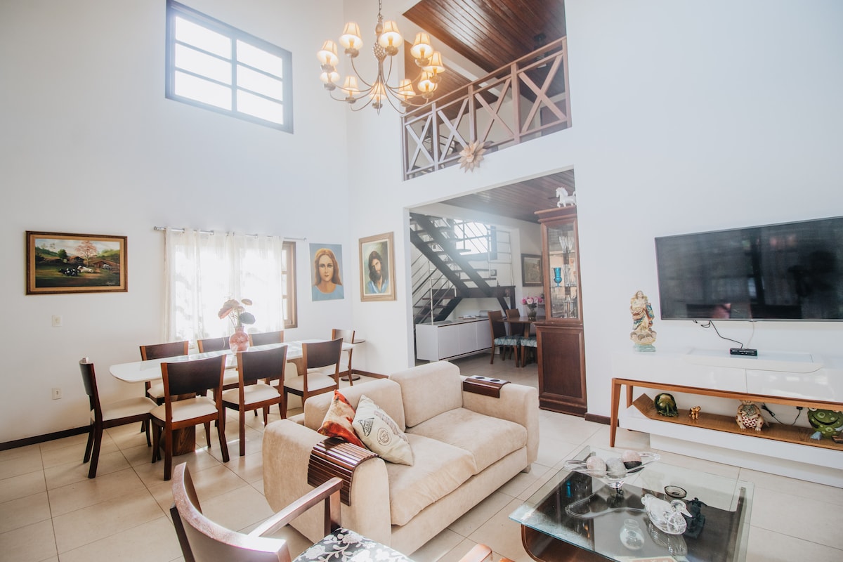 Chaleten ligger kun ti minutter fra centrum af Gravatá og er perfekt til fredelige dage og gode øjeblikke. Hyggeligt og omgivet af grønne områder, det er det ideelle sted at koble af og nyde bjergluften. Lejligheden tilbyder aktiviteter for alle aldre: legeplads, børnepool, trampolin, fodbold- og tennisbaner samt pool, sauna, spilrum, fiskesø og parkering. Perfekt til en familieweekend, afslappende dage med venner eller en rolig smuttur for to. Et sted at slappe af og have det godt!