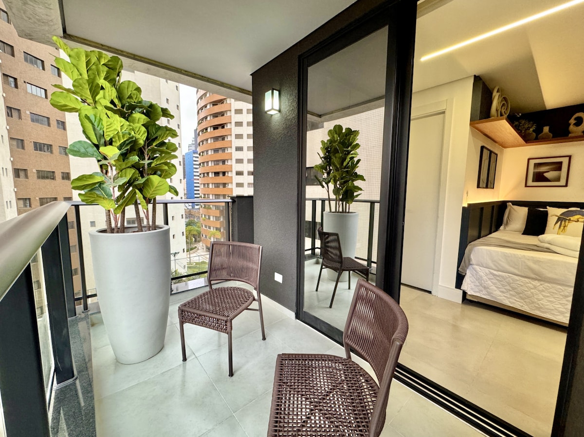 Lejligheden er NY og af højeste kvalitet. En af de ædleste i Curitiba, med plads, ventilation, god belysning og boligområde. Det ligger på 12. etage med udsigt over byens solnedgang. Der er 03 blokke fra den botaniske have. Har plads til op til 06 personer, har 01 suite med balkon, plus 02 soveværelser med dobbeltsenge, spisestue og stuer med balkon med grill, aircondition, omgivende lyd, vandrenser, espressomaskine. Sengetøj og håndklæder Buddemeyer.