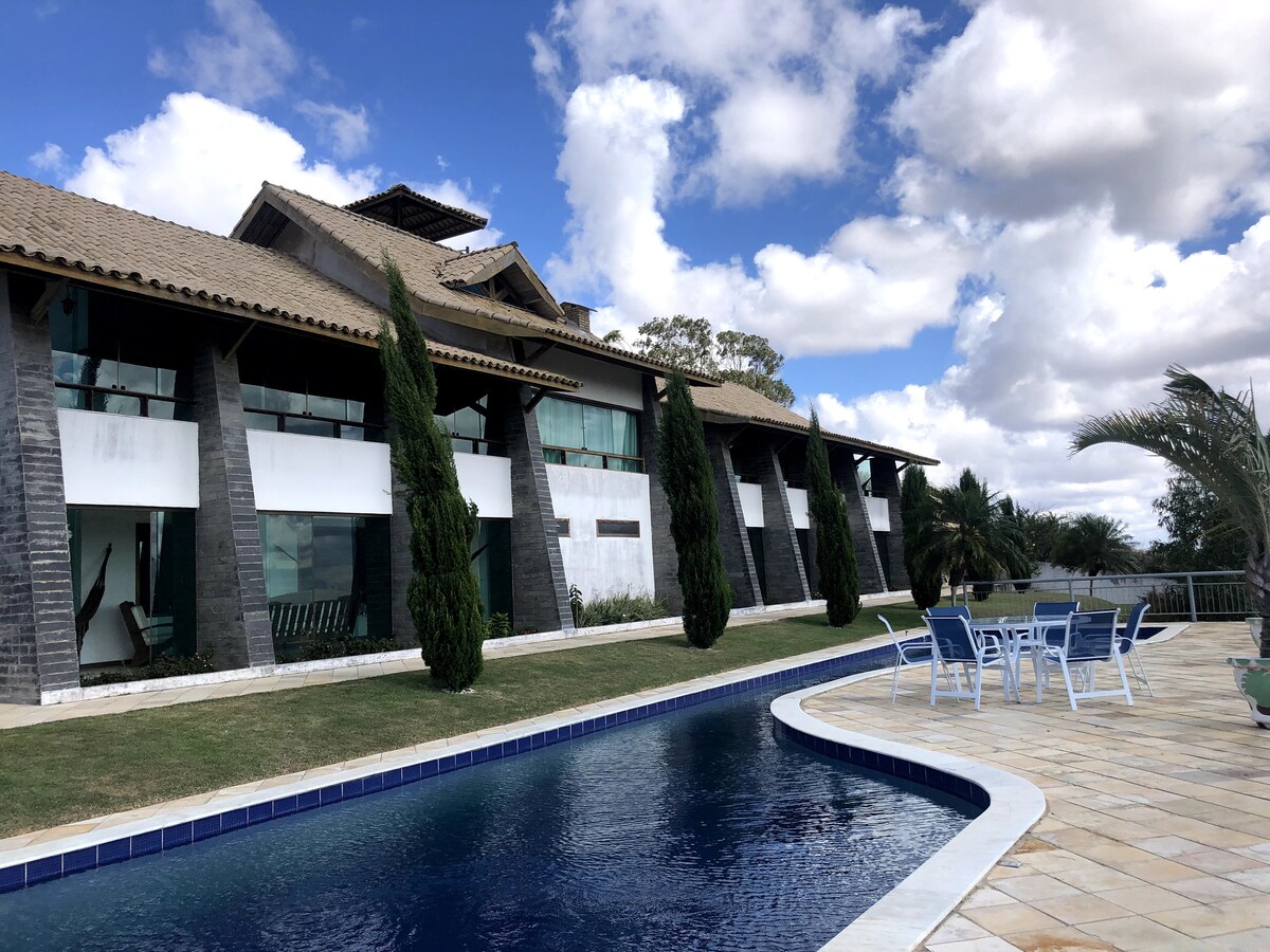 @flatmonte.castelo beliggende i et gårdområde i Agreste, der giver et roligt miljø og i kontakt med naturen. Med en struktur, der godt integrerer regionens naturlige skønheder, samt rekreative områder såsom swimmingpools, haver og stier, der fremhæver landskabets charme. Gæsterne kan nyde en panoramaudsigt over det lokale landskab og en ideel atmosfære for hvile. Det er en ideel mulighed for dem, der søger komfort, fritid og en autentisk oplevelse på landet i Pernambuco.