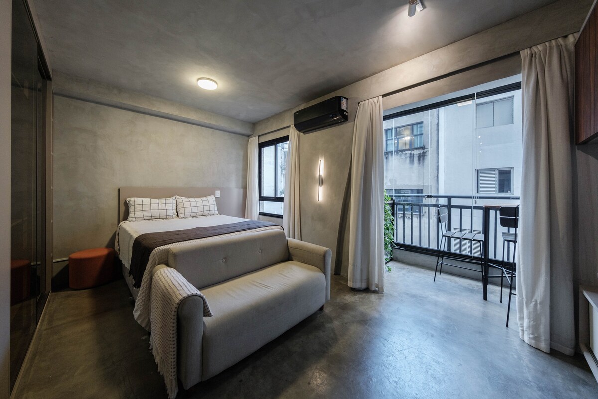Beliggende i et privilegeret område i centrum, kun 8 minutters gang fra metrostationerne Higienópolis og República, er dette førsteklasses studie blevet renoveret, er upåklageligt rent og er blevet designet med omhu til at byde dig velkommen. I nærheden finder du: 4 minutters gang fra Sesc Consolação; 5 minutters gang fra Santa Casa; 7 minutters gang fra Mackenzie; 8 minutters gang fra Roosevelt Square; 6 minutters gang fra den Michelin-stjernede restaurant, A Casa do Porco.