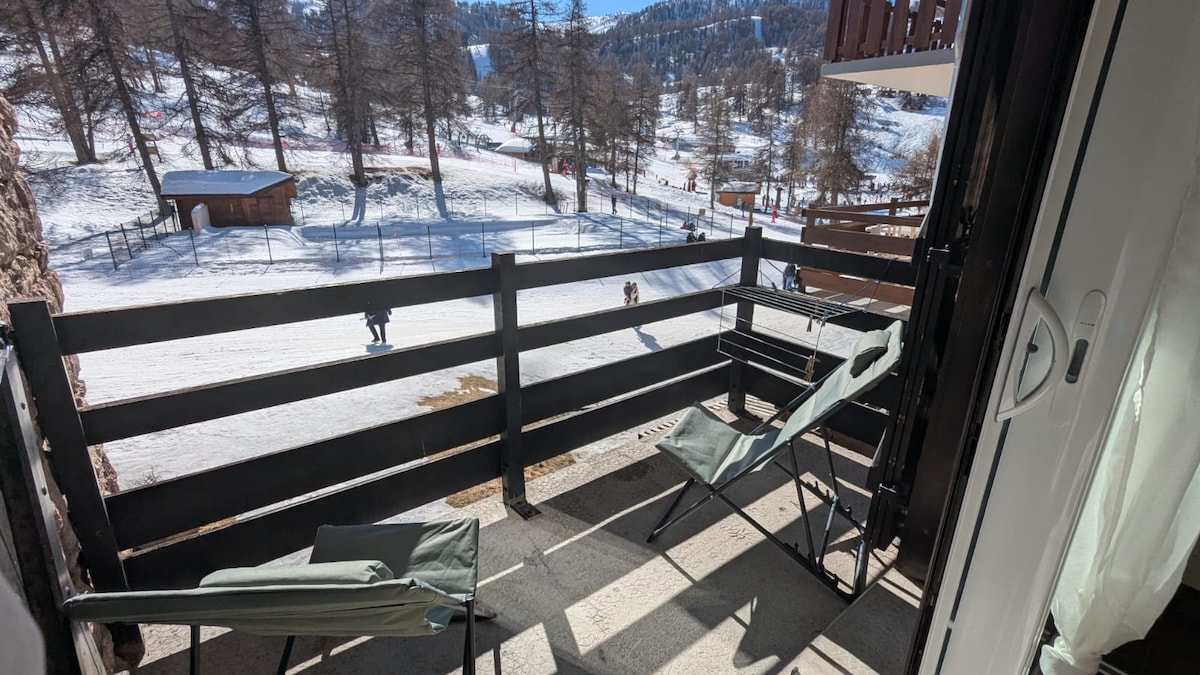 Denne duplex med balkon, sydvendt, ligger på 3. og øverste etage i Eterlou-residensen (ingen elevator). Beliggende i den centrale gade, kun 50 m fra skråningerne, vil du nyde roen på pladsen med alle butikkerne ved foden af bygningen (hæveautomat, skiliftbilletkontorer og andre). Denne bolig, der er ideel til en familie, består af et soveområde på ca. 15 m2 på mezzaninen, herunder en køjeseng 90x200 og en seng 140x190, hvilket gør det behageligt og rummeligt.