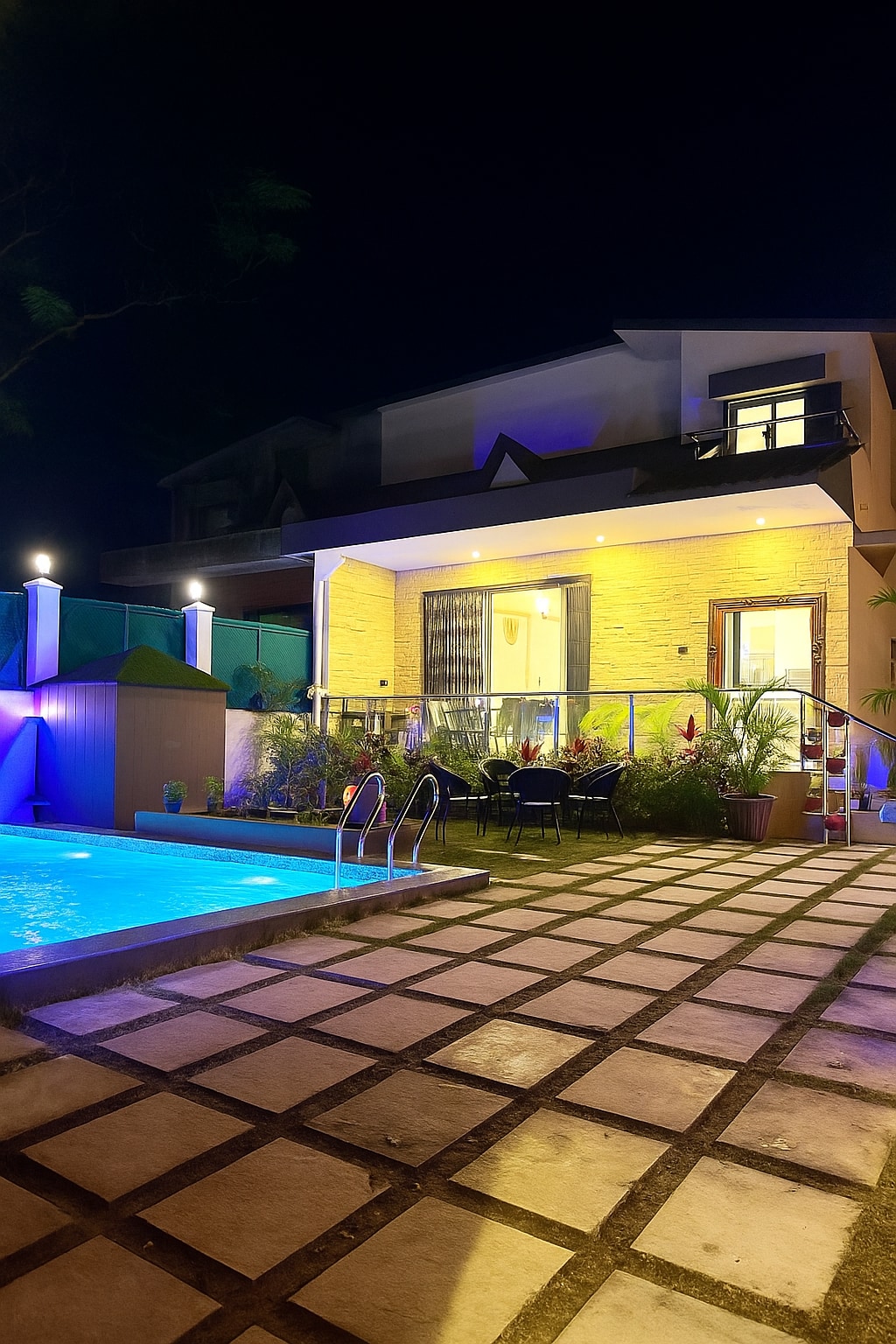 Luksuriøs 3BHK-villa med privat pool og snookerbord. Oplev den perfekte ferie i denne elegante villa med privat swimmingpool, snookerbord og rummeligt moderne interiør. Perfekt til familier og grupper, der leder efter sjov, der er sjovt, komfortabelt og afslappende. Drypkaffemaskine, te- og grøn te-maskine på alle værelser.
