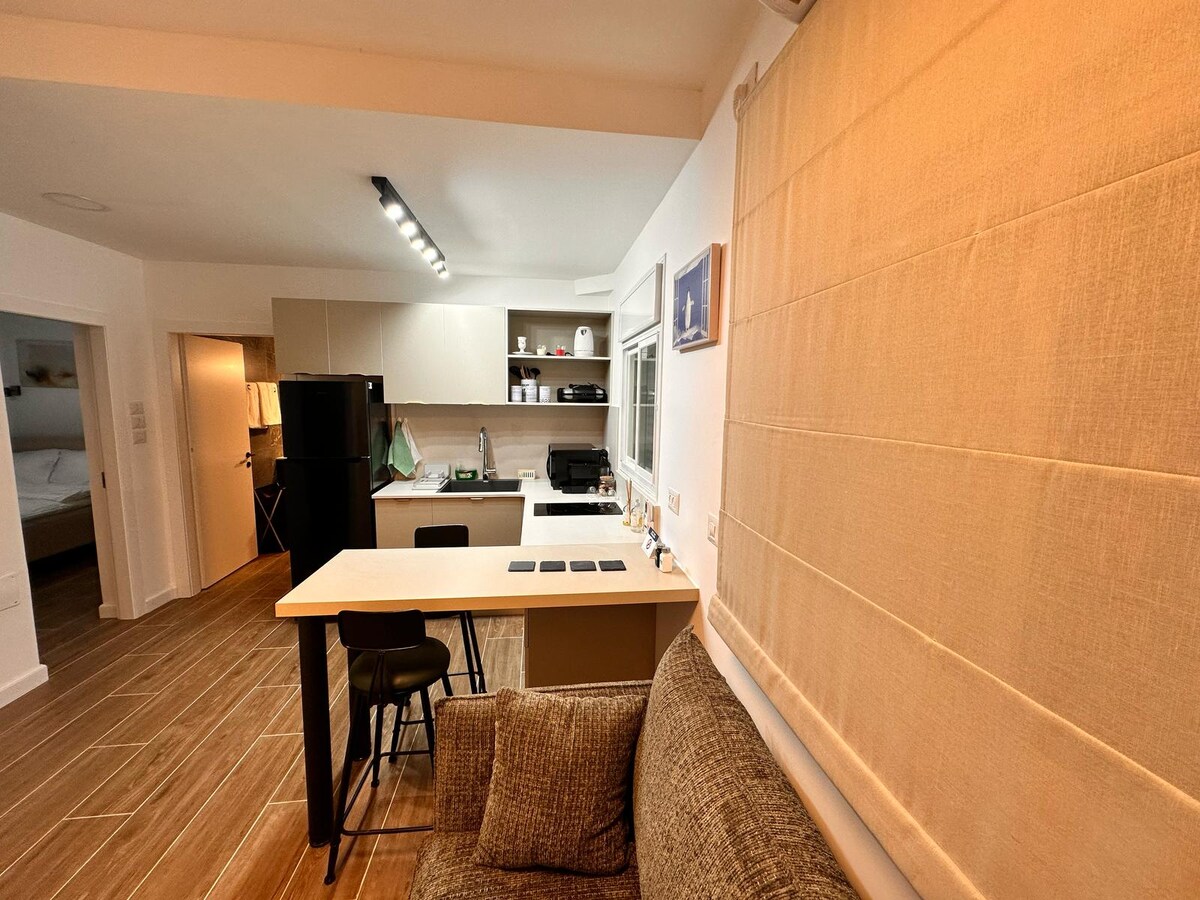 Nyrenoveret, fuldt udstyret etværelseslejlighed. Internet, TV, køkken, flot badeværelse, aircondition. Beliggende i stueetagen i en 3-etagers bygning og har en lille egen have. Afstanden fra stranden er ca. 50 m. Togstationen ligger 7 min. gang. Israelske gæster bedes bemærke: Der skal lægges moms oven i prisen. Momsbeløbet beregnes i henhold til det beløb, vi modtager fra Airbnb. Momsen kan betales ved opholdets afslutning kontant eller med kreditkort