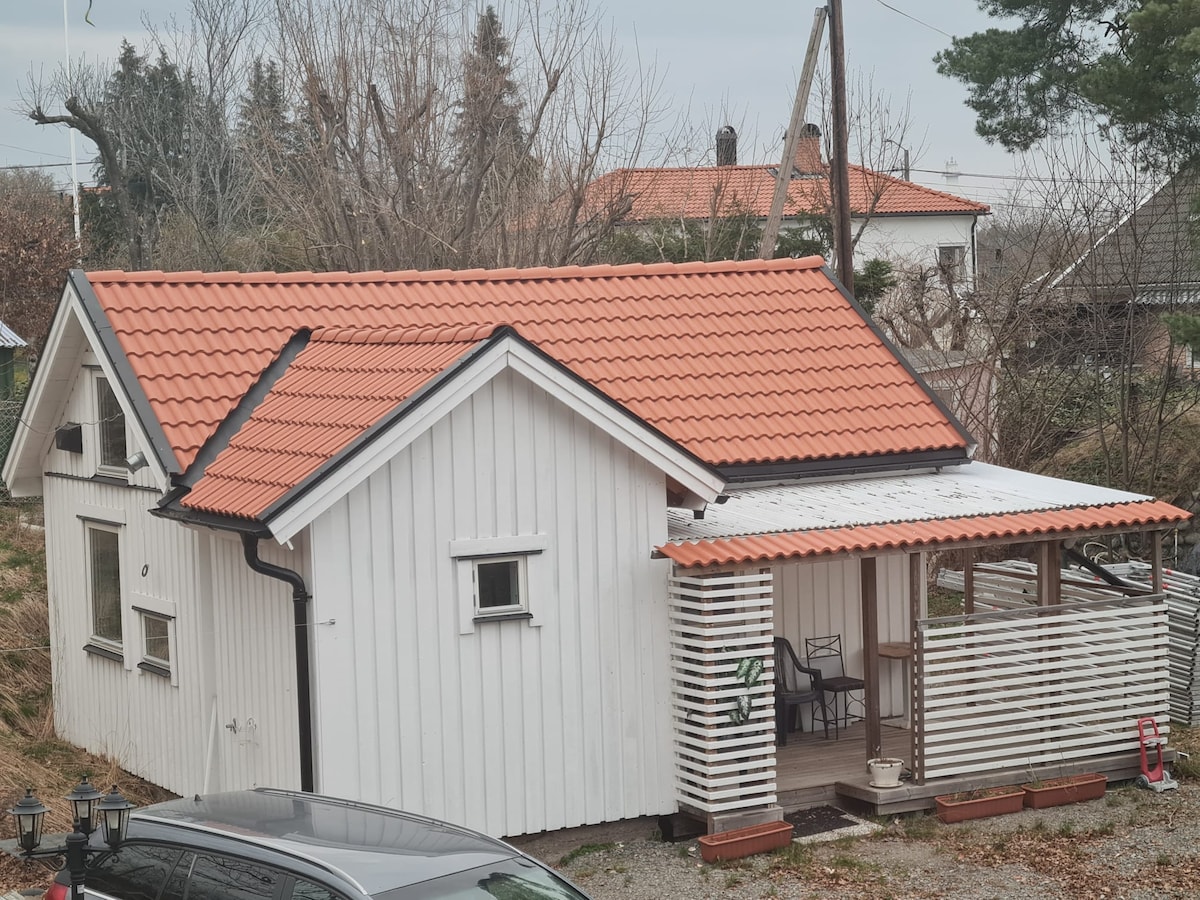 Læn dig tilbage, og slap af i denne rolige, stilfulde bolig. Huset er 27 kvm plus et hyggeligt sovehems på 6 kvm med en stor dobbeltseng. Der er adgang til et komplet køkken, en sofagruppe og et badeværelse med vaskemaskine. Udenfor er der en lille terrasse mod sydvest. Huset ligger i et roligt og dejligt villaområde i Örby, det sydlige Stockholm. God transport med bus, metro og pendlertog. Tæt på dagligvarebutik, 6 minutters gang, eller indkøbscenter, 10-12 minutters gang.