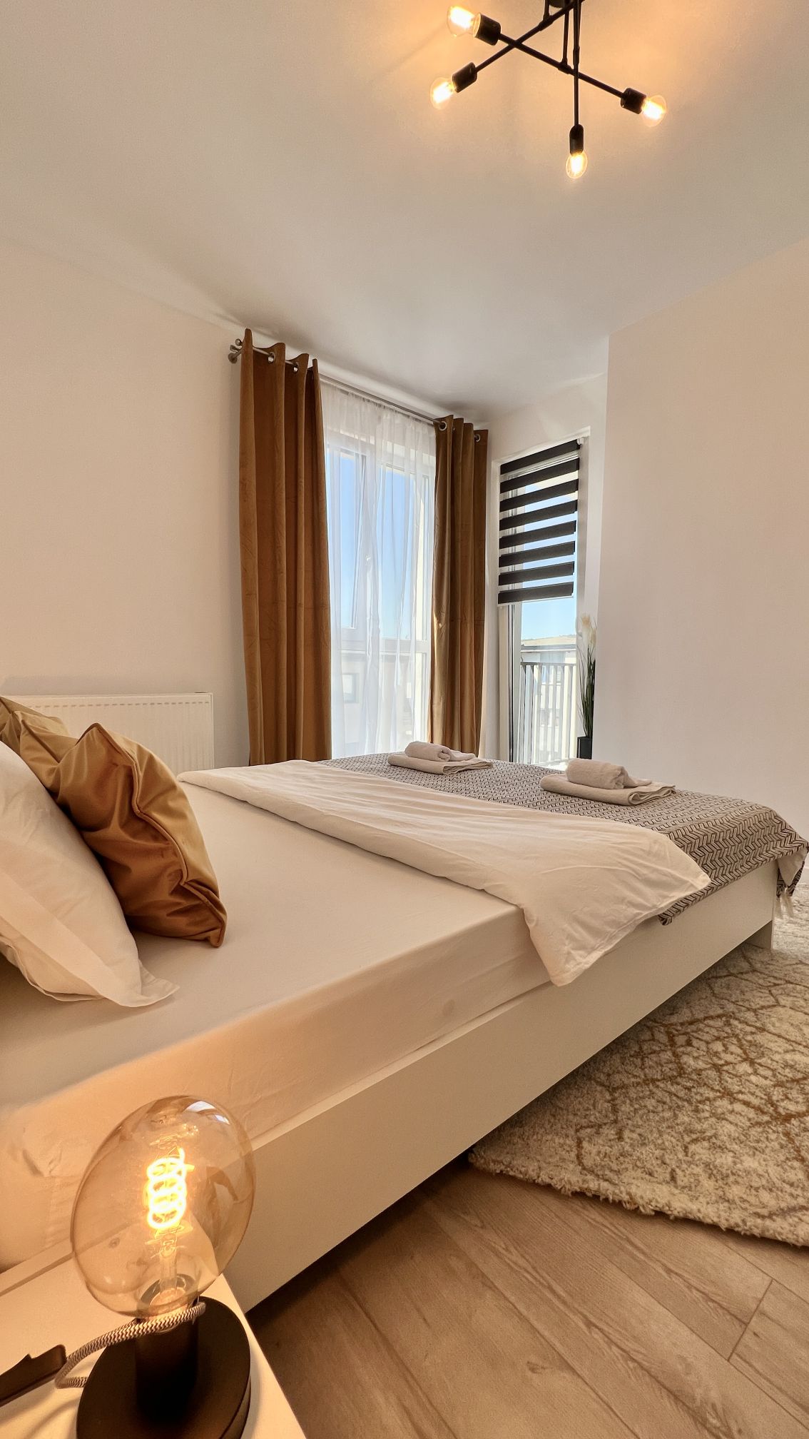 Cozy and relaxing apartament with a great view. The place has a minimalistic design and elegant details .It has all the appliances and devices that you expect in your home. With a 5 minute walk to the local shops and 10 minutes to the local bus station . We offer on site free parking. We also ofer air conditioning for a smal extra fee .