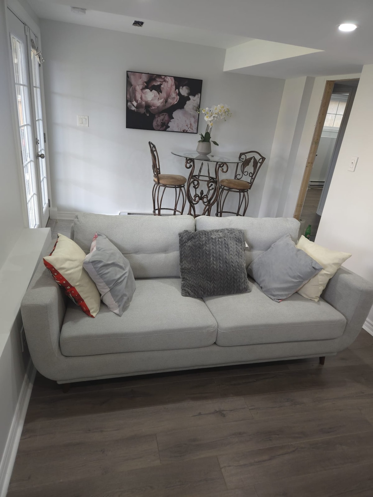 The in law suite is located in the lower level of a large home in Orleans in the East end of Ottawa.The in-law suite has a bedroom (double bed) w/ desk & television ; living room w/pejs & a sofa that is the size of a single bed for 1 person and a television. Fuldt udstyret køkken. Vaskeriet er på samme niveau og privat badeværelse kun for gæster i svigersuiten. Dejlig baghave. Gæsterne kan bruge det motionsrum, der er udstyret med løbebånd, motionscykel, crosstrainer og vægte osv.