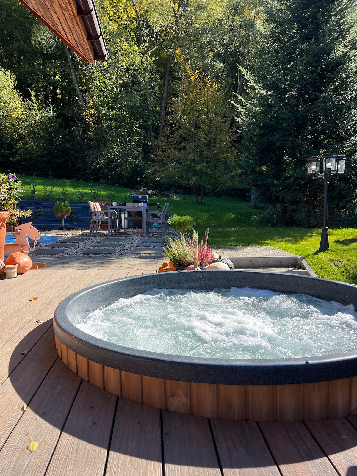 4,88 ud af 5 i gennemsnitlig bedømmelse, 25 omtalerSelvstændigt hus med swimmingpool, jacuzzi og SAUNA, skov