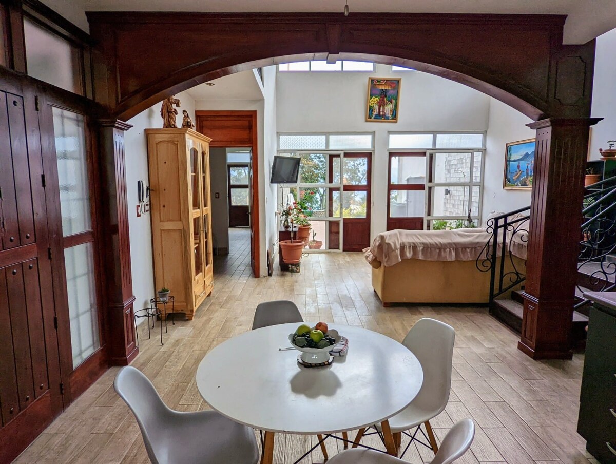 Nyd den ro og fred, som dette hus og boligområde tilbyder. Vi ligger 5 minutter fra Xetulul, Xocomil, Xejuyup, Dino Park & Legetøjsmuseet. Xela ligger mindre end en times kørsel væk, Fuentes Georginas ligger 45 minutter væk, og strandene Champerico og Tulate ligger en time væk. Huset har en privat pool, rummelige soveværelser, et åbent koncept i køkkenet, spisestuen og stuen. Vi har også et arbejdsområde med skrivebord og internet.
