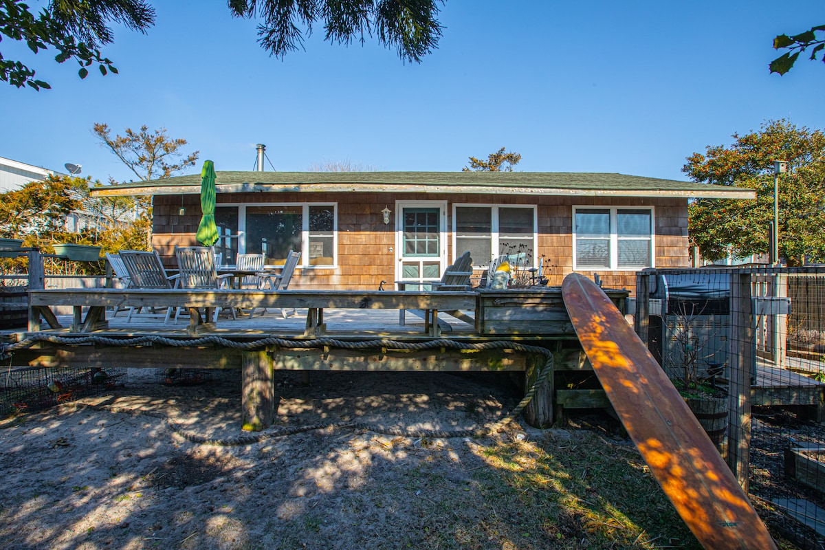 Denne rene, lyse og luftige hytte tilbyder en fredfyldt udflugt med en fantastisk udsigt over Napeague Harbor. Kun en kort gåtur væk ligger en af de smukkeste havstrande Boligen har 3 komfortable soveværelser og 3 komplette badeværelser og et udendørs brusebad Indenfor, Hytten er velindrettet og designet. Toget fra Amagansett til Montauk passerer bag huset, men det forstyrrer ikke den fredfyldte udsigt over bugten. Bemærk: På grund af sundhedsmæssige problemer kan vi ikke tage imod dyr.