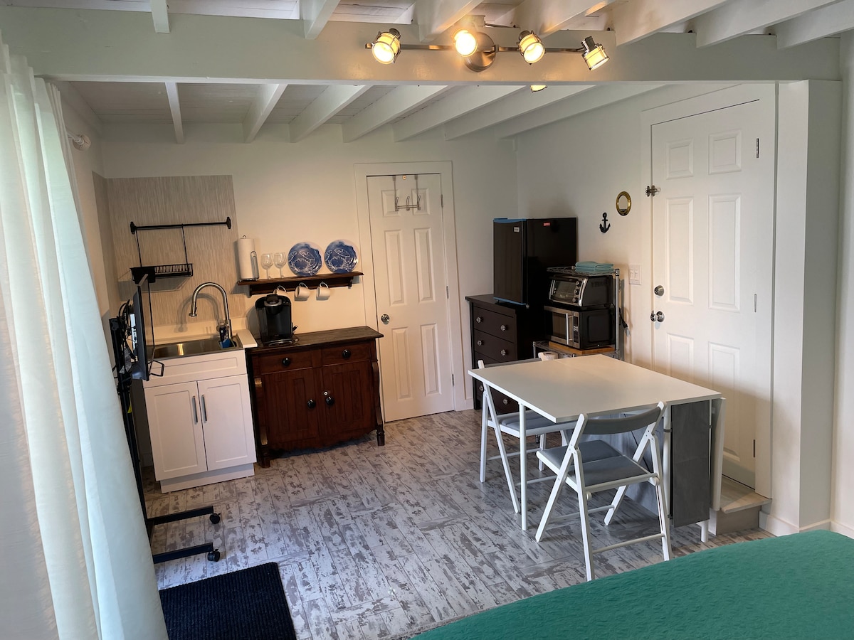Vores nybyggede, smarte enheder ligger i den smukke ikoniske landsby East Hampton. Vi har 4 enheder til rådighed, tjek venligst andre, hvis denne er udsolgt. Meget rummelig studiolejlighed med queensize-seng. Alle enheder er blevet kurateret som et boutique-hotelleværelse, moderne, smukt og med alt det, du har brug for for at få et godt ophold! Tæt på butikker, strand og kort køretur til Montauk. Alle enheder har madras i hukommelsesskum, wi-fi, smart-tv(intet kabel kun streaming aps) og et nyt køkken med basisting!
