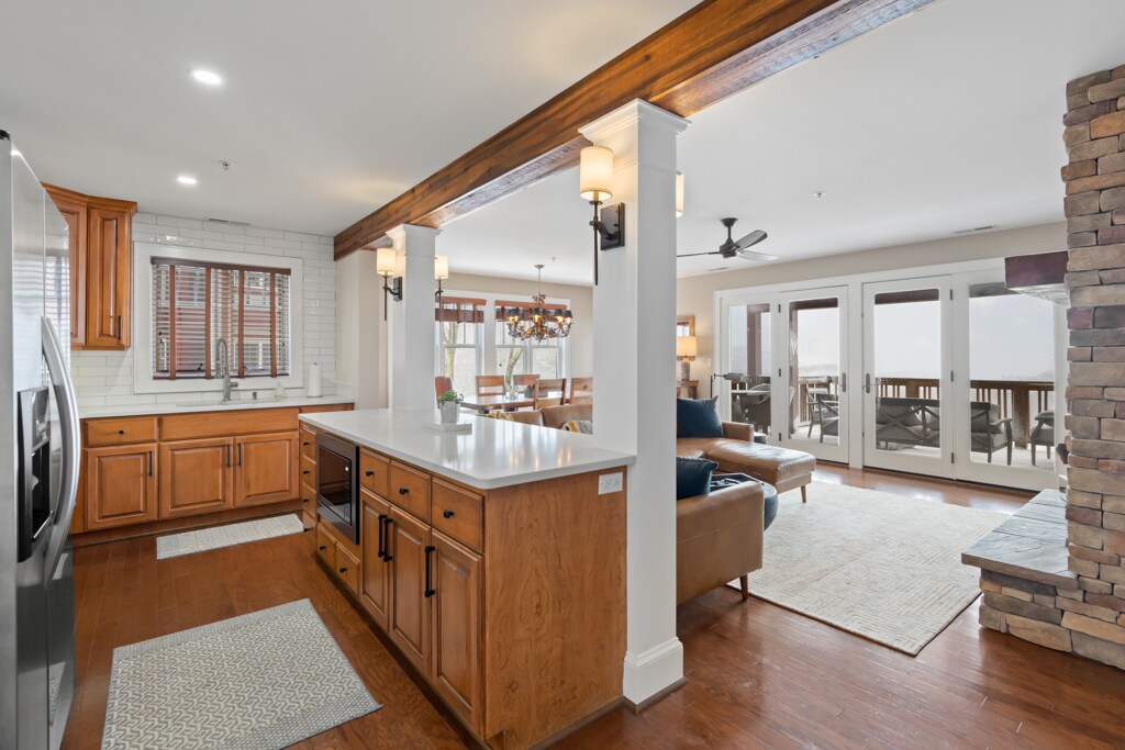 Skab vidunderlige bjergminder i vores smukke hjem på øverste etage med en fantastisk udsigt over Sugar Mountain og videre. Vi har ladet os inspirere af Blue Ridge til at skabe et stilfuldt, komfortabelt fristed med gulve i vinylplanker, et moderne køkken, smart-tv i alle rum og vaskemaskine og tørretumbler i fuld størrelse. Den private master suite har en kingsize-seng med en behagelig madras af memory foam. Det andet soveværelse har en queensize-dobbeltseng med memory foam. Der er også en udtrækssofa til ekstra gæster.