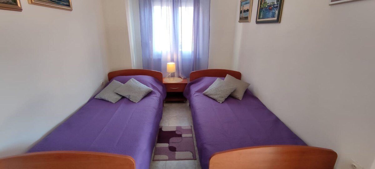 Dette charmerende traditionelle dalmatiske hus ligger i Ždrelac på Pašman, omgivet af fyrretræer og med udsigt over havnen og landsbyens centrum. Huset blev bygget af vores familie for 80 år siden og er renoveret med kærlighed, så det bevarer sin oprindelige karakter og ø-ånd. Vågn op til havudsigt, slap af på terrassen, nyd den private have, og udforsk den fredelige natur på Pašman og Ugljan, især uden for sæsonen. Gå til nærliggende strande, lokale restauranter, og nyd en ægte øflugt.