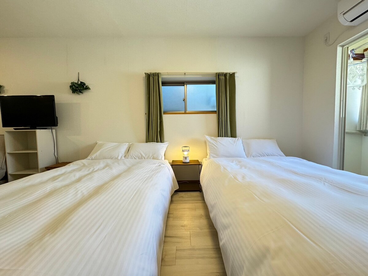 Welcome to Sumiyoshi Soreko! This 43 sqm 2LDK house sleeps up to 6 guests with two double beds and a sofa bed, perfect for groups or families. It's conveniently near Kansai International Airport, just 34 minutes on the Nankai Line, and 10 minutes from Namba and Shinsaibashi shopping areas. Enjoy easy access to Osaka's attractions. We offer hotel-grade bed sheets and sterilized towels and supplies for your safety and comfort.